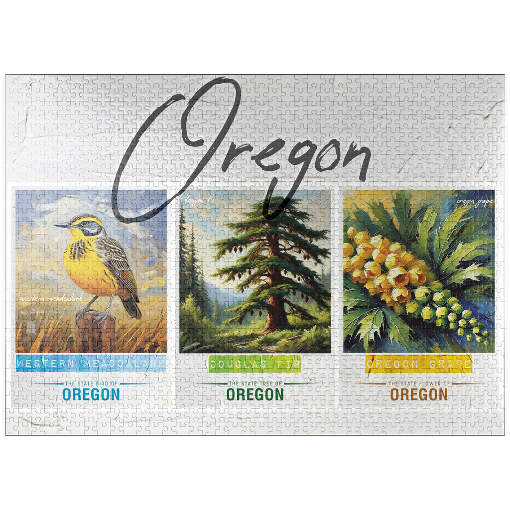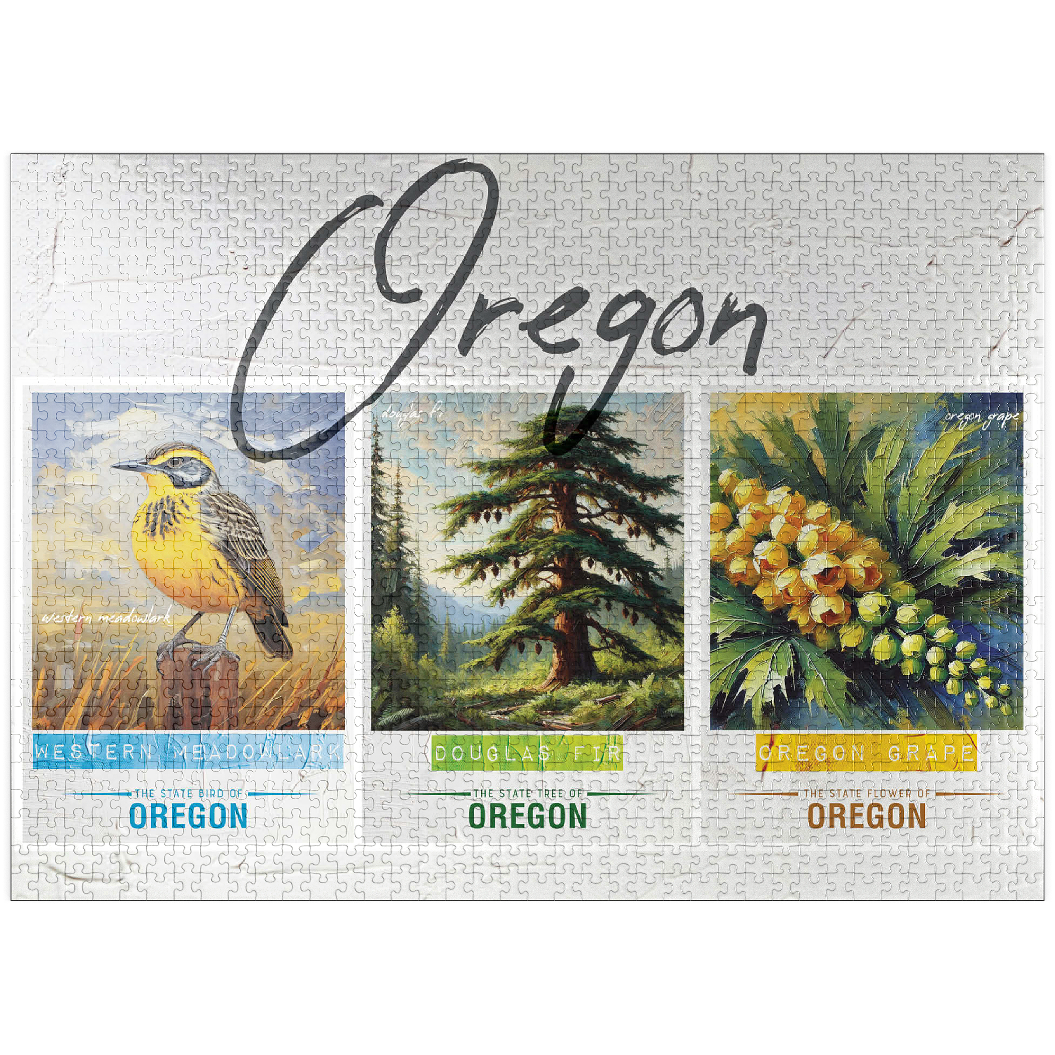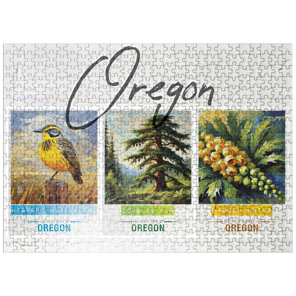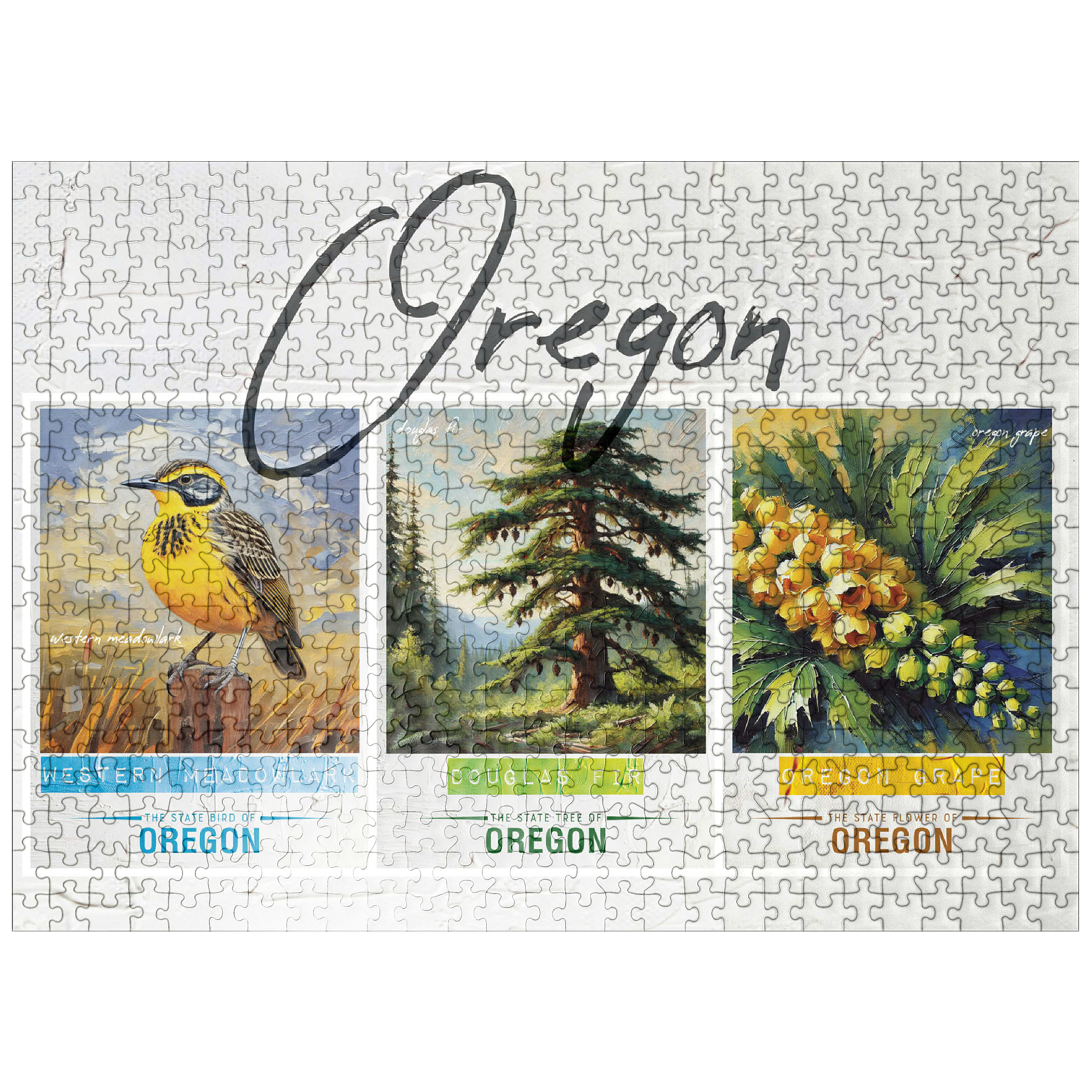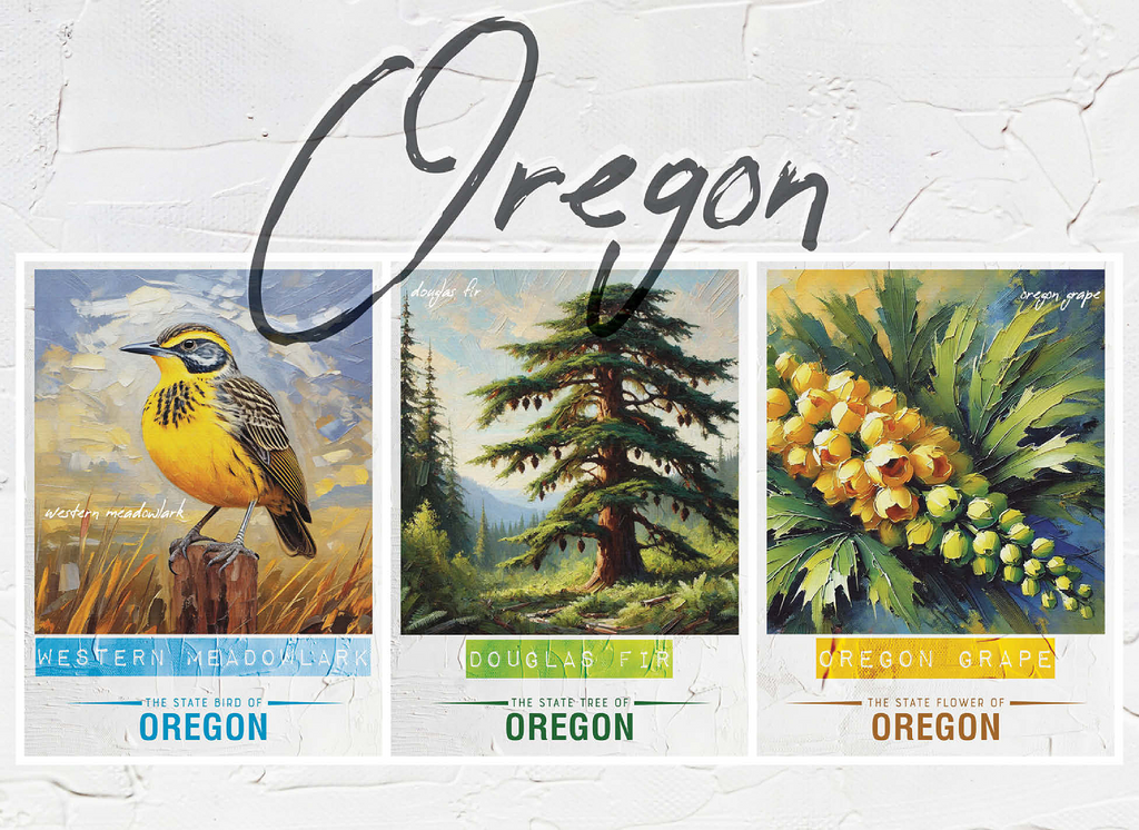 Oregon: Bird, Tree, Flower- State Symbols Collage Series