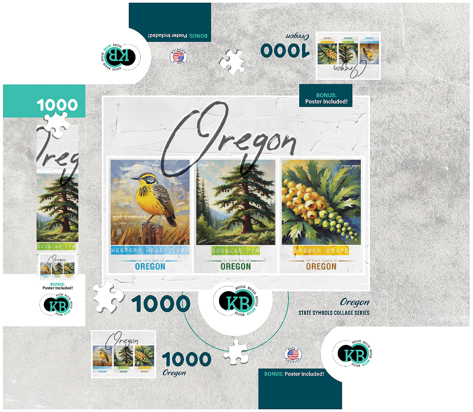 Explore the country in vivid, colorful detail with all the wonder nature has to offer. Enjoy these three illustrated posters-combined and crafted with an artistic, painterly style-which give texture and life to the state bird, state tree and state flower of each of our unique 50 states! The State Symbols Poster Series is a fun way to show your state pride! This would make a great gift for a fellow out-of-state puzzle-lover.