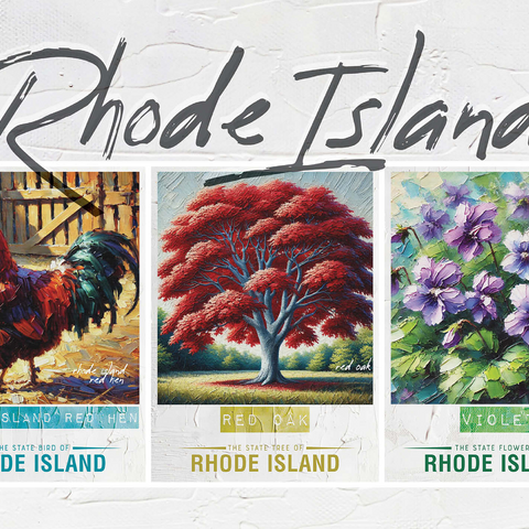 Rhode Island: Bird, Tree, Flower- State Symbols Collage Series