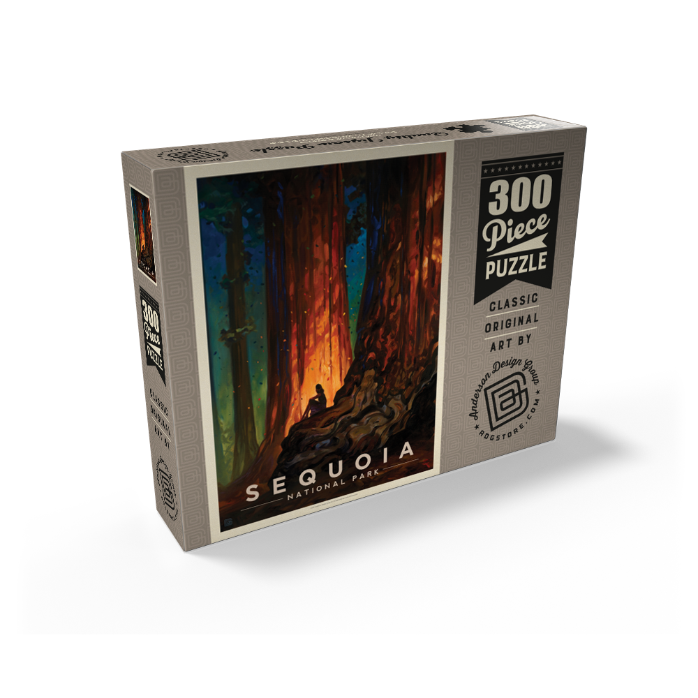 Sequoia National Park teaches its visitors a bit of wisdom: that this world is big and man is small, and that we should all be more concerned with protecting it. When people walk among the trunks of trees thousands of years old, such an experience inspires nostalgia and awe. Anderson Design Group's own Kai Carpenter brought that feeling to life in this early-20th century oil painting of a visitor to the park who sits in calm contemplation on the trunk of a massive Sequoia tree. The perfect Jigsaw Puzzle for Adults, available as 1000, 500 and 100 pieces puzzle.