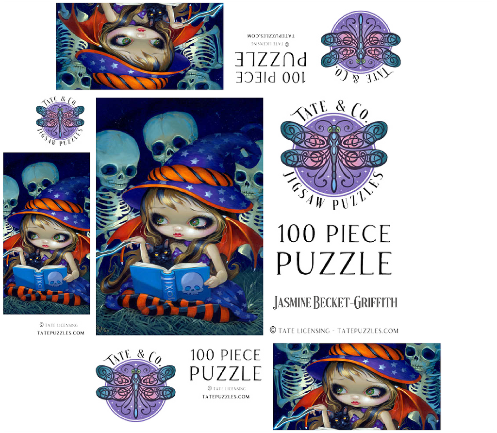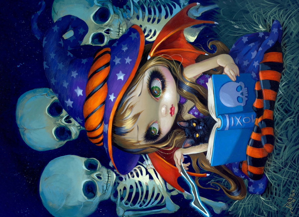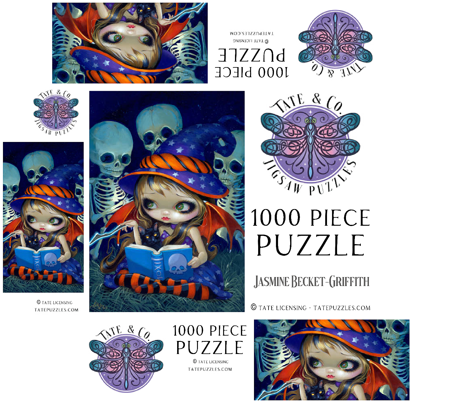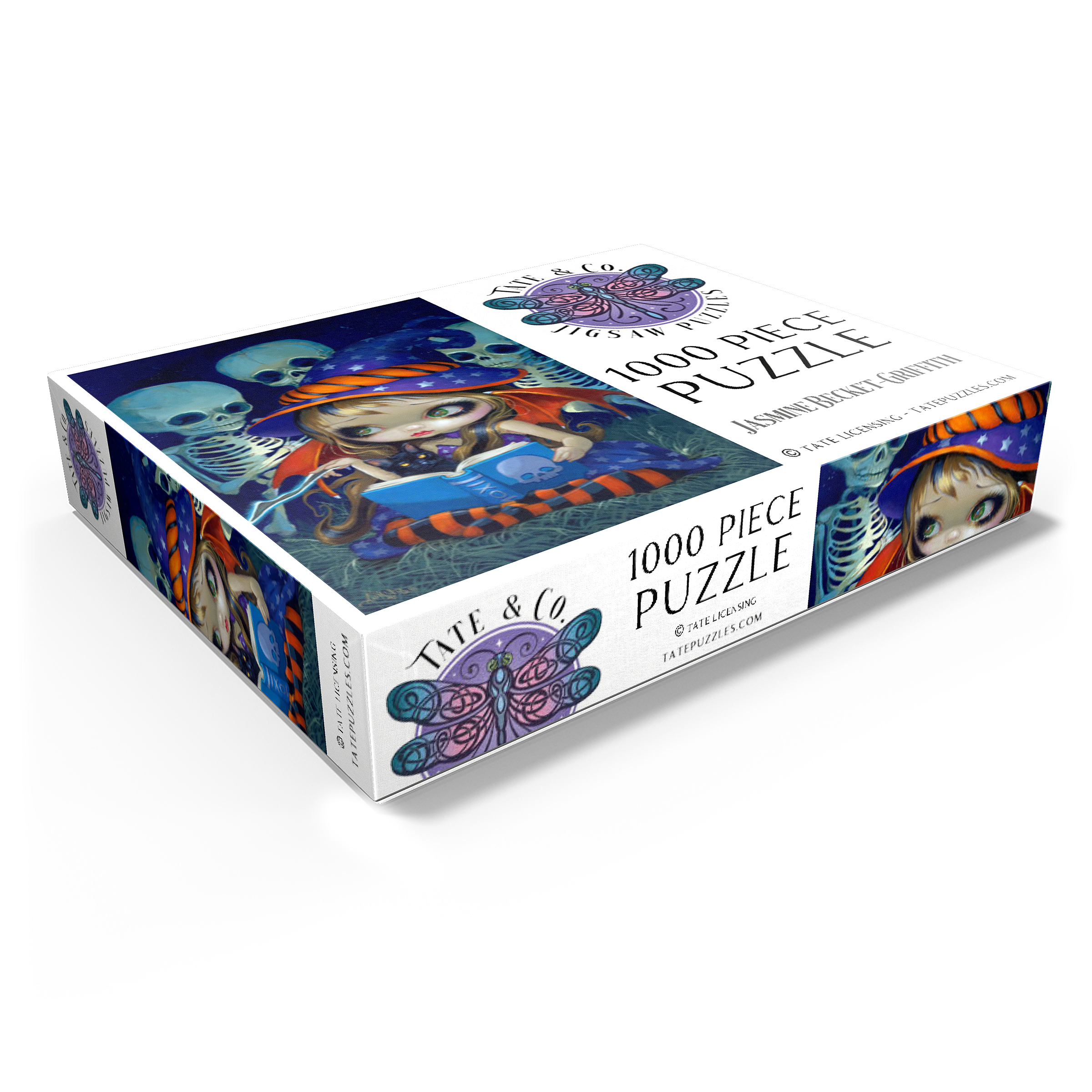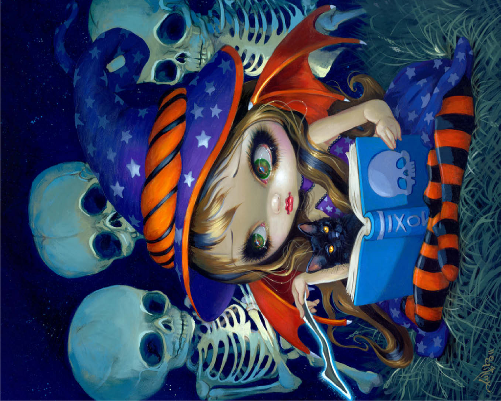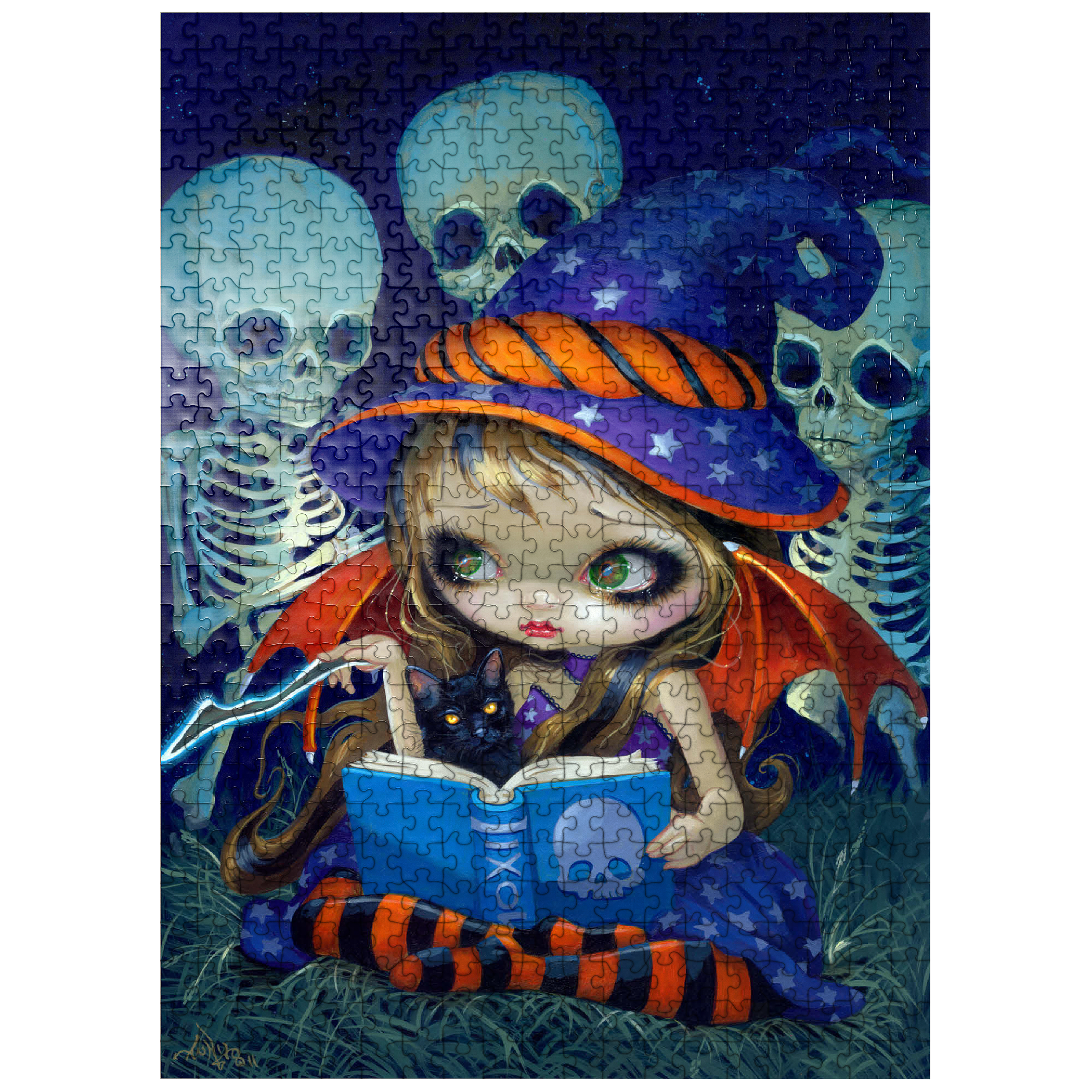 Conjure up some puzzling fun with -Skeleton Magic-! Assemble this enchanting scene of a little witch and her black cat familiar as she casts a skeleton summoning spell from her book. Piece together the magic and mystery in this whimsical and slightly spooky puzzle!