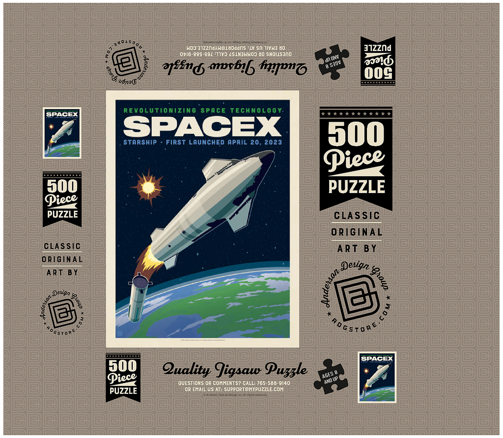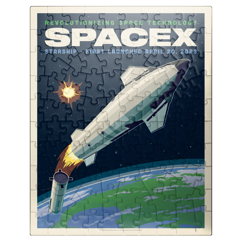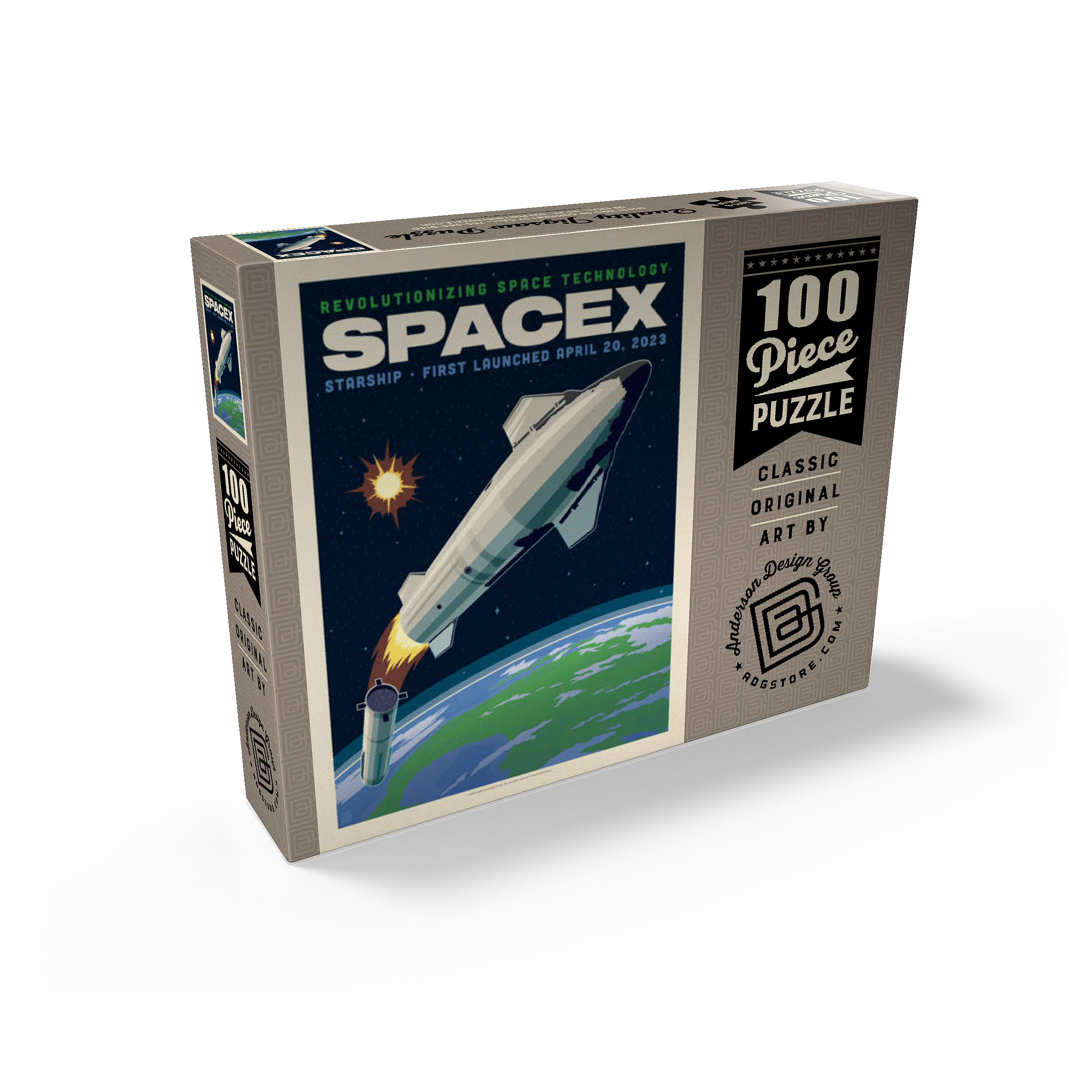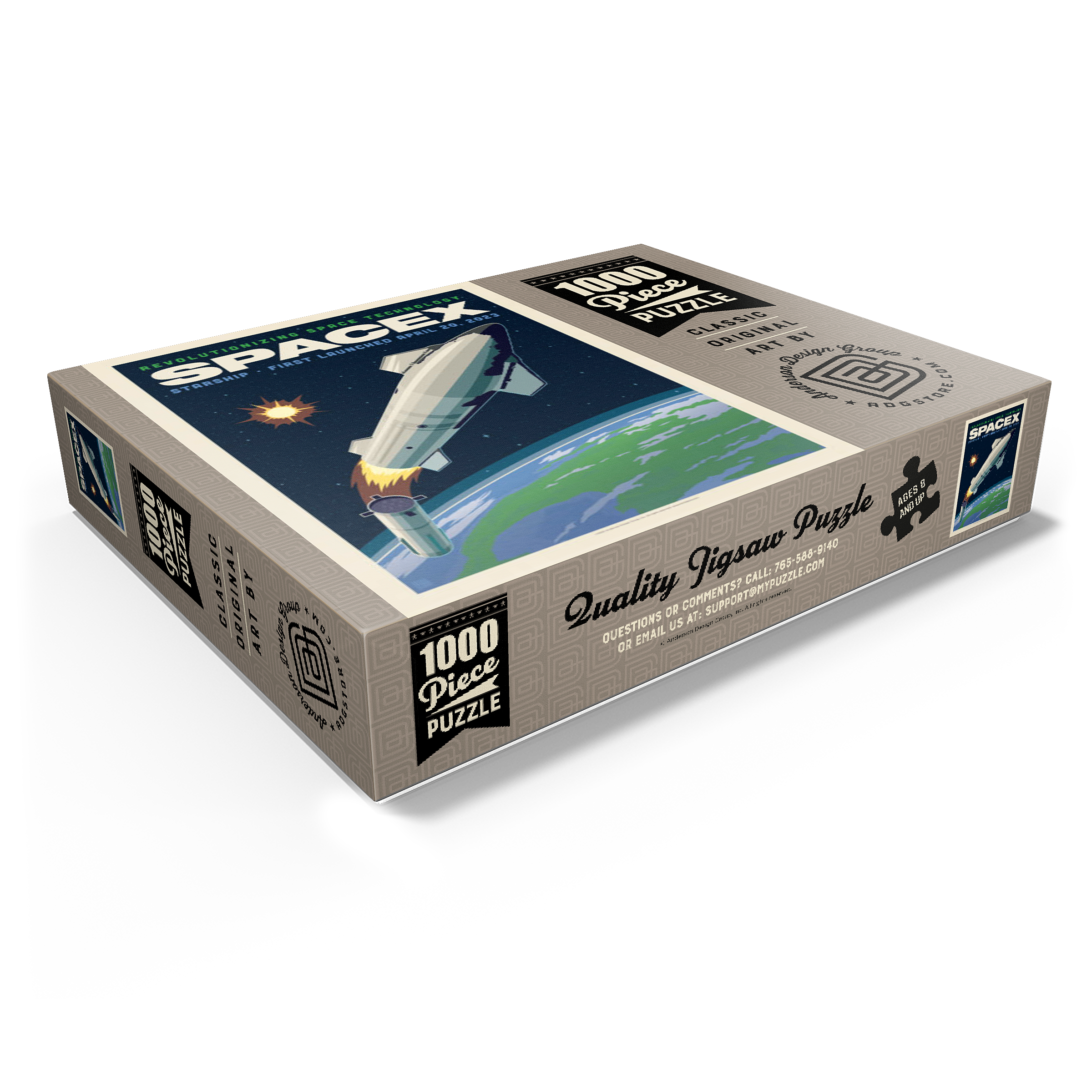 This striking retro-style illustration celebrates the SpaceX Starship's first launch on April 20, 2023, marking a major step toward revolutionizing space technology. The scene depicts Starship separating from its Super Heavy booster as it ascends into low Earth orbit, set against a backdrop of stars, the glowing sun, and the curvature of Earth. As the most powerful rocket ever built, Starship is designed for fully reusable deep space missions, including future crewed flights to the Moon and Mars. The bold colors and vintage design emphasize innovation, ambition, and the new era of private space exploration led by SpaceX.