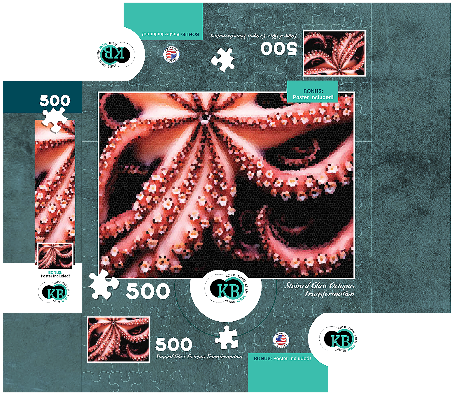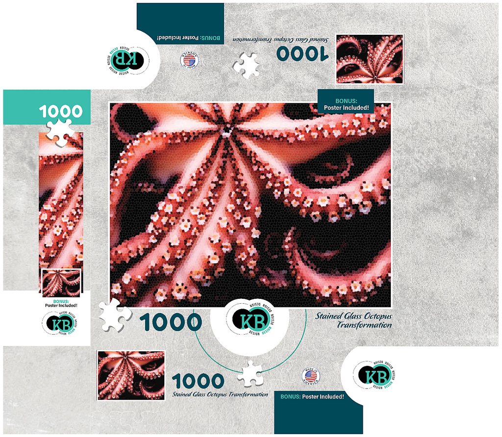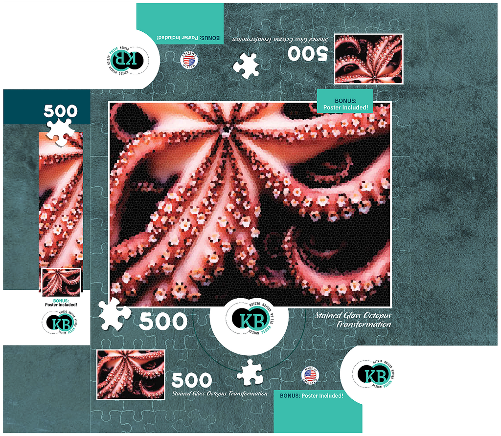 The abstract stained glass collection is a unique way to display some of your favorite subjects in artistic fashion. Designed to mimic the beauty of a stained glass window with bold panels of color-this octopus is a must-have for any wall. Choose from many other puzzles in this collection and display them all together to bring brilliant hues of abstract color into your home.