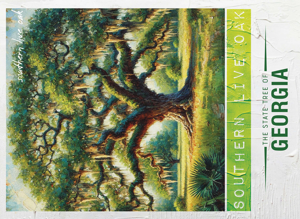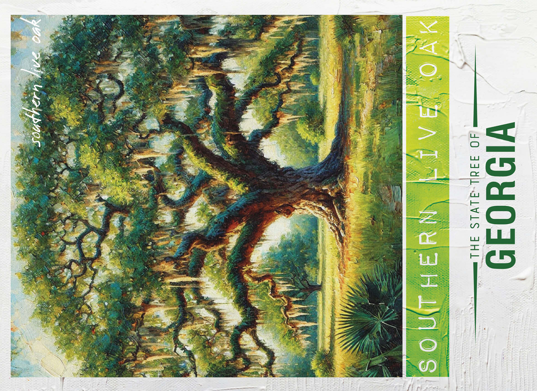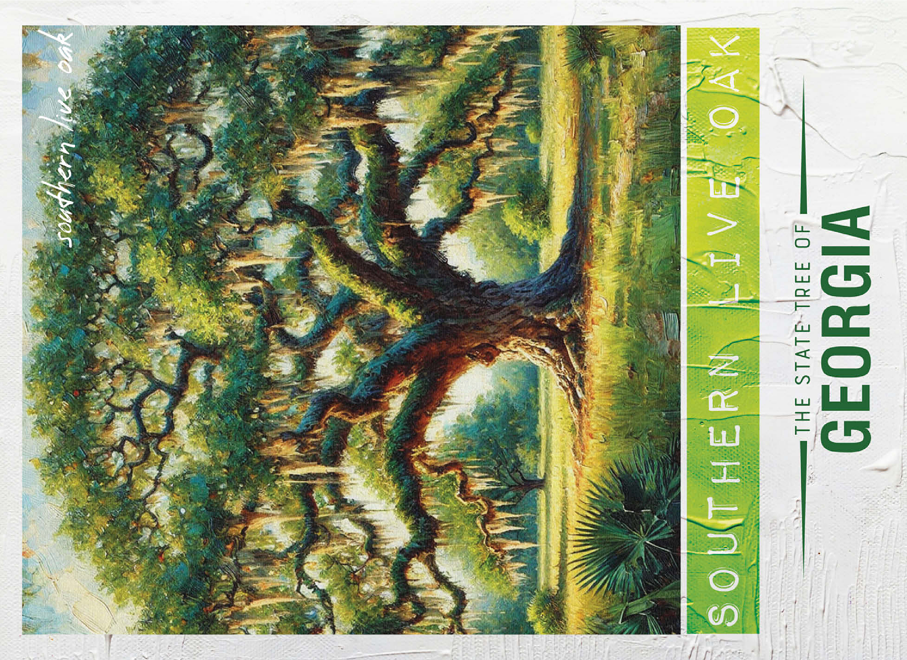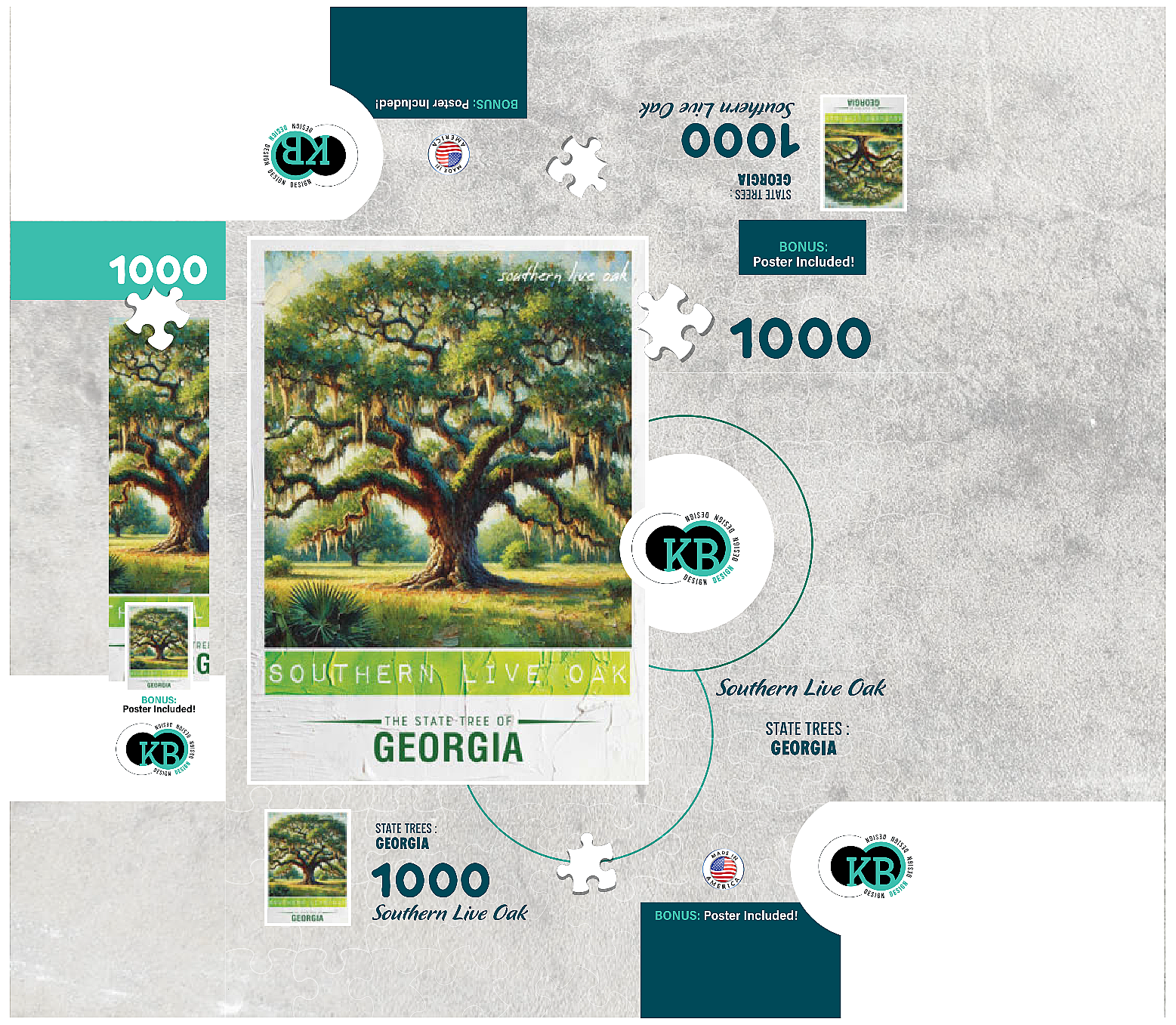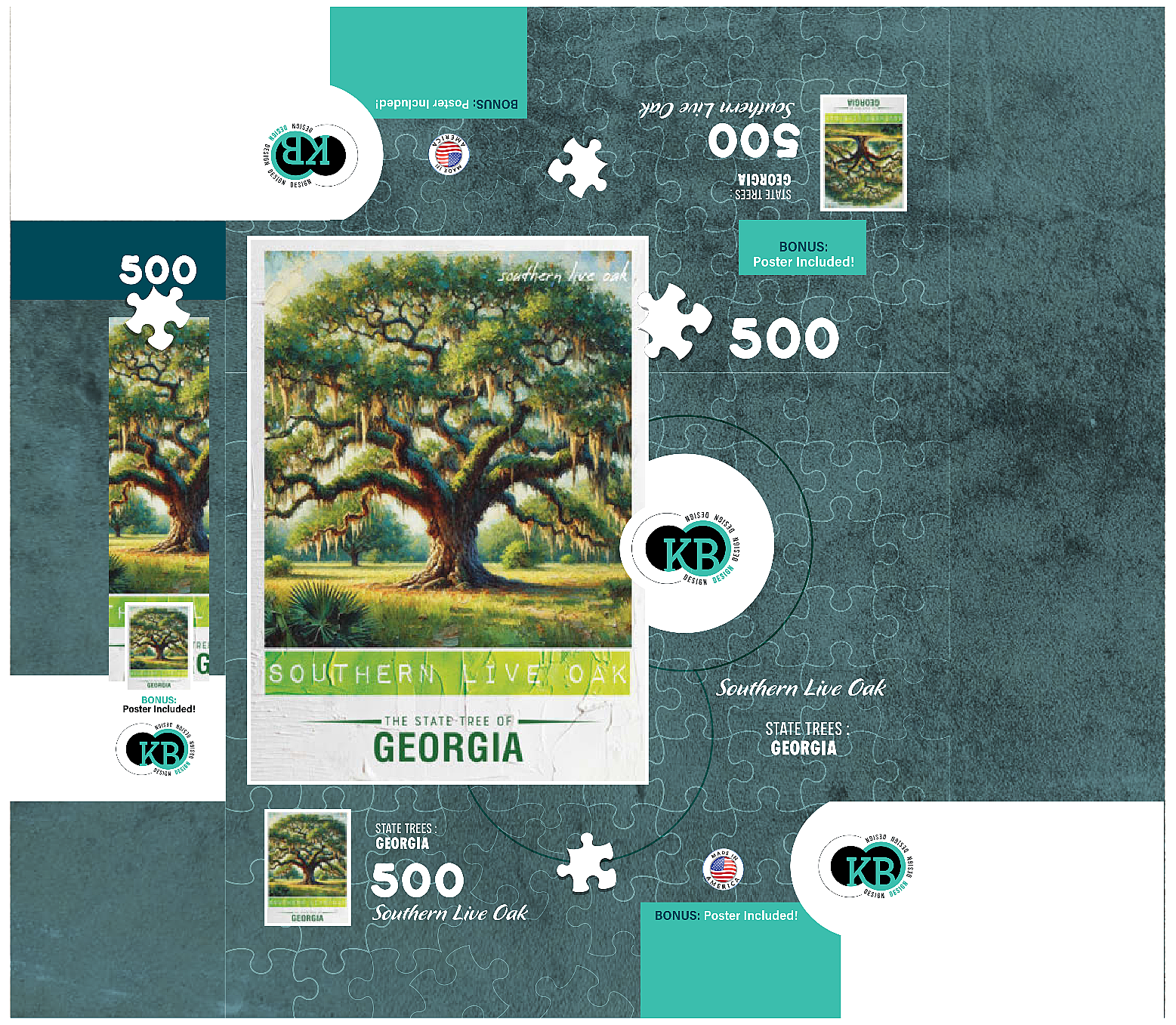 The state tree of Georgia is the live oak (Quercus virginiana), designated in 1937. This majestic tree is known for its sprawling branches, strong wood, and evergreen leaves. It thrives in Georgia's coastal regions and provides vital habitat for wildlife. Historically, live oak wood was used in shipbuilding, including for the USS Constitution, nicknamed -Old Ironsides.- The tree symbolizes strength, resilience, and the beauty of the Southern landscape. The State Trees collection is a unique way to show your state pride! Choose your state, or pick your favorite tree from the collection and watch it come to life. This would make a great gift for a fellow out-of-state puzzle-lover. Go on an 'adventure across the country' and collect them all!