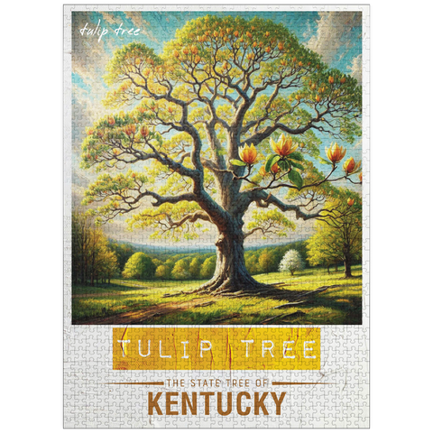 The state tree of Kentucky is the tulip tree (Liriodendron tulipifera), also known as the yellow poplar. It was designated as the official state tree in 1994. This tall, fast-growing tree is known for its tulip-shaped flowers, bright green leaves, and golden fall foliage. Tulip trees provide strong, lightweight wood used in furniture, flooring, and construction. They are a prominent part of Kentucky's forests and symbolize growth, beauty, and resilience. The State Trees collection is a unique way to show your state pride! Choose your state, or pick your favorite tree from the collection and watch it come to life. This would make a great gift for a fellow out-of-state puzzle-lover. Go on an 'adventure across the state' and collect them all!