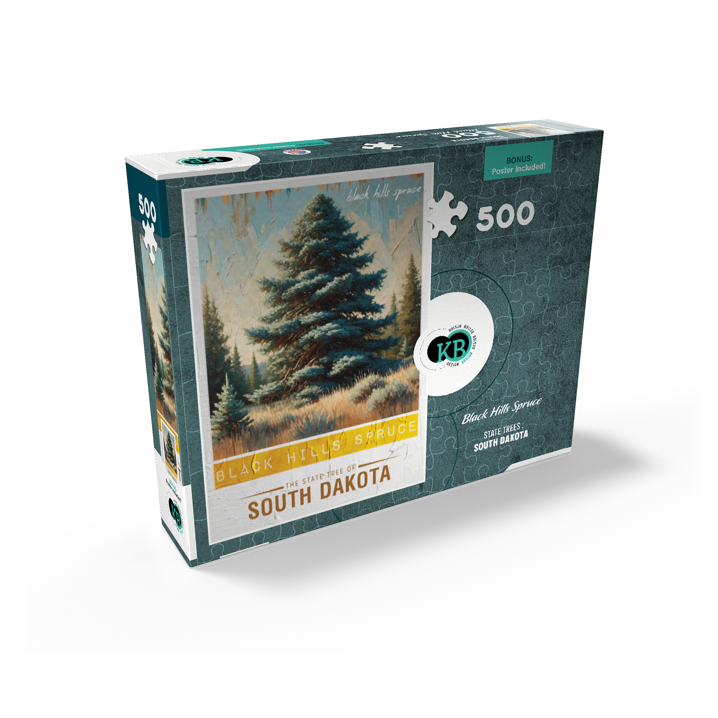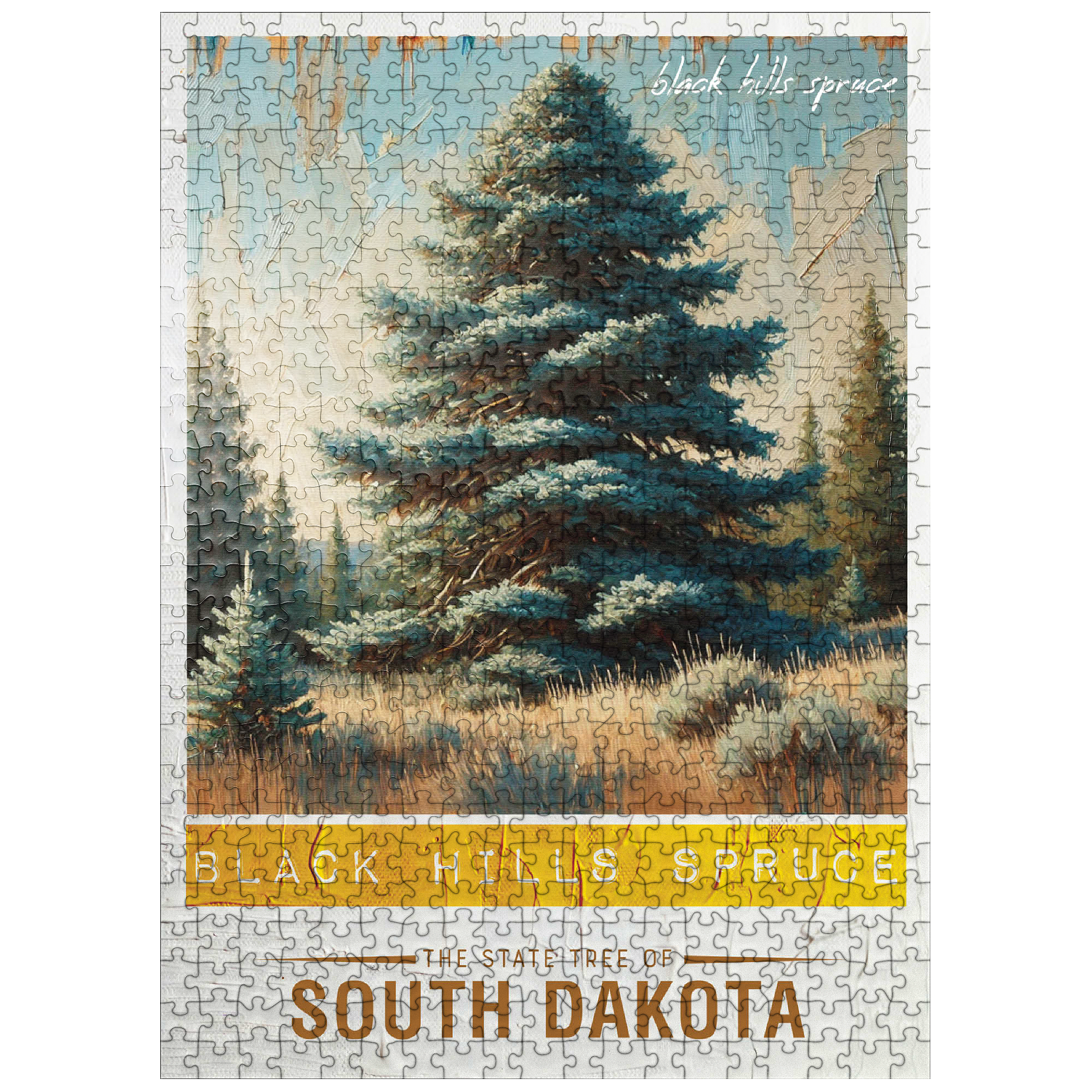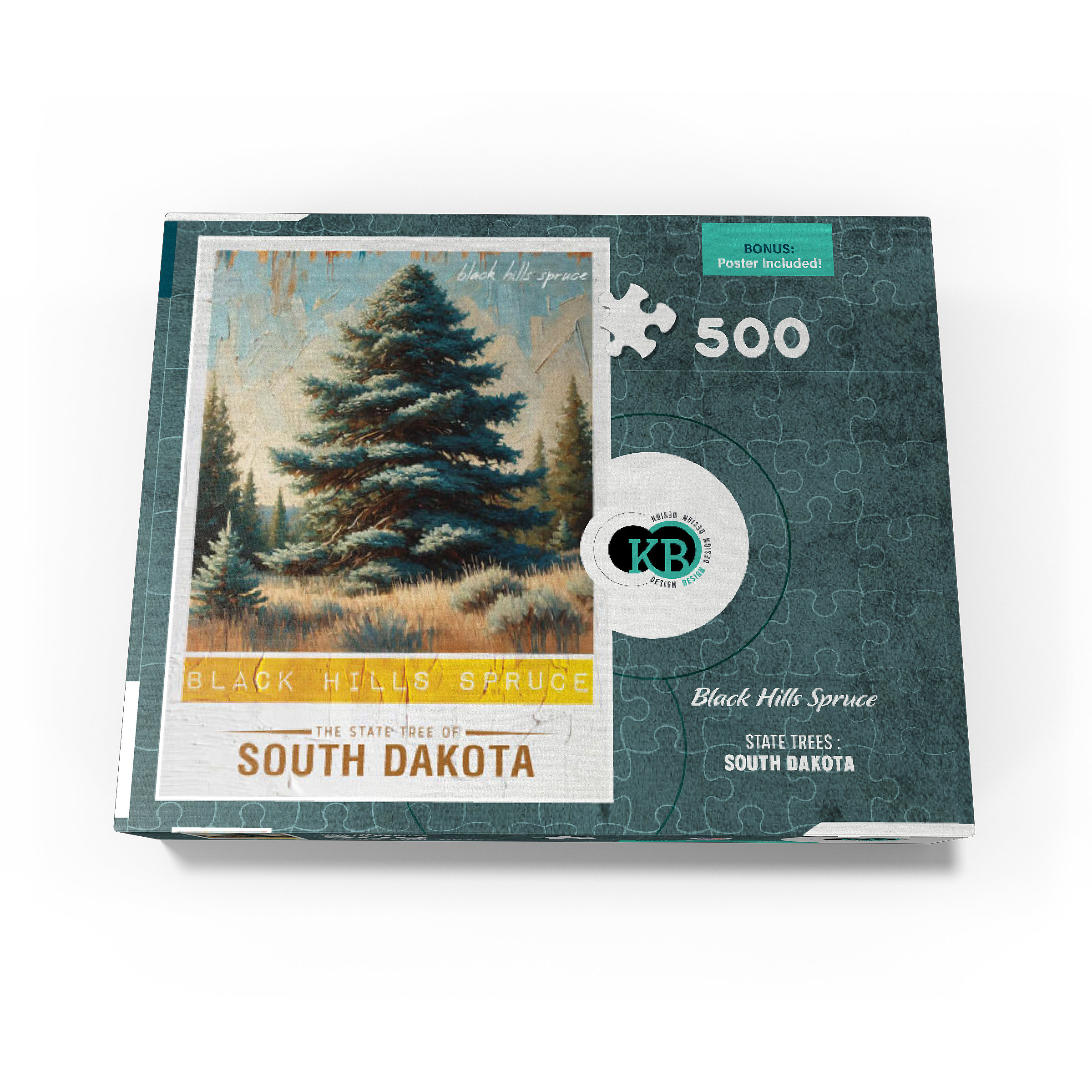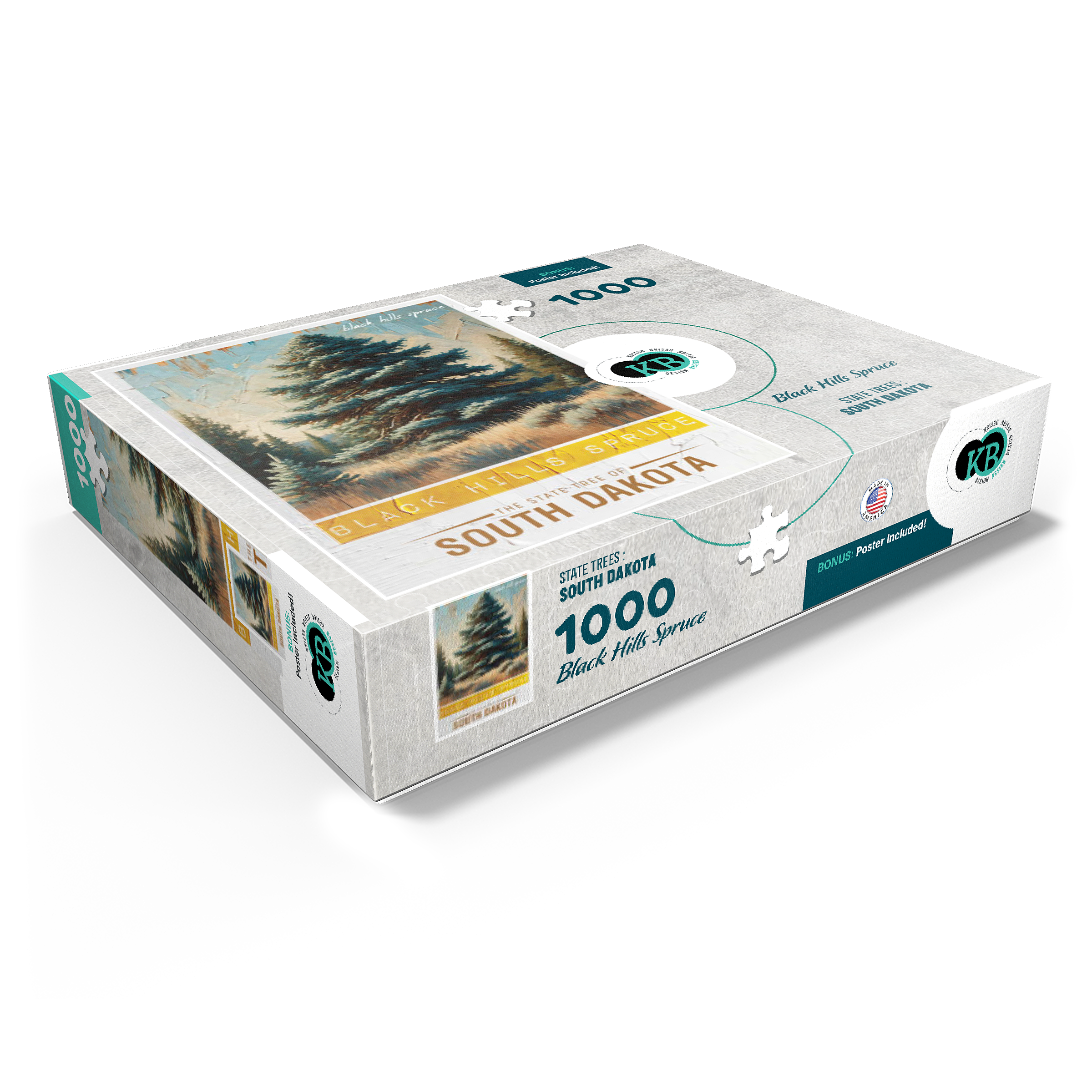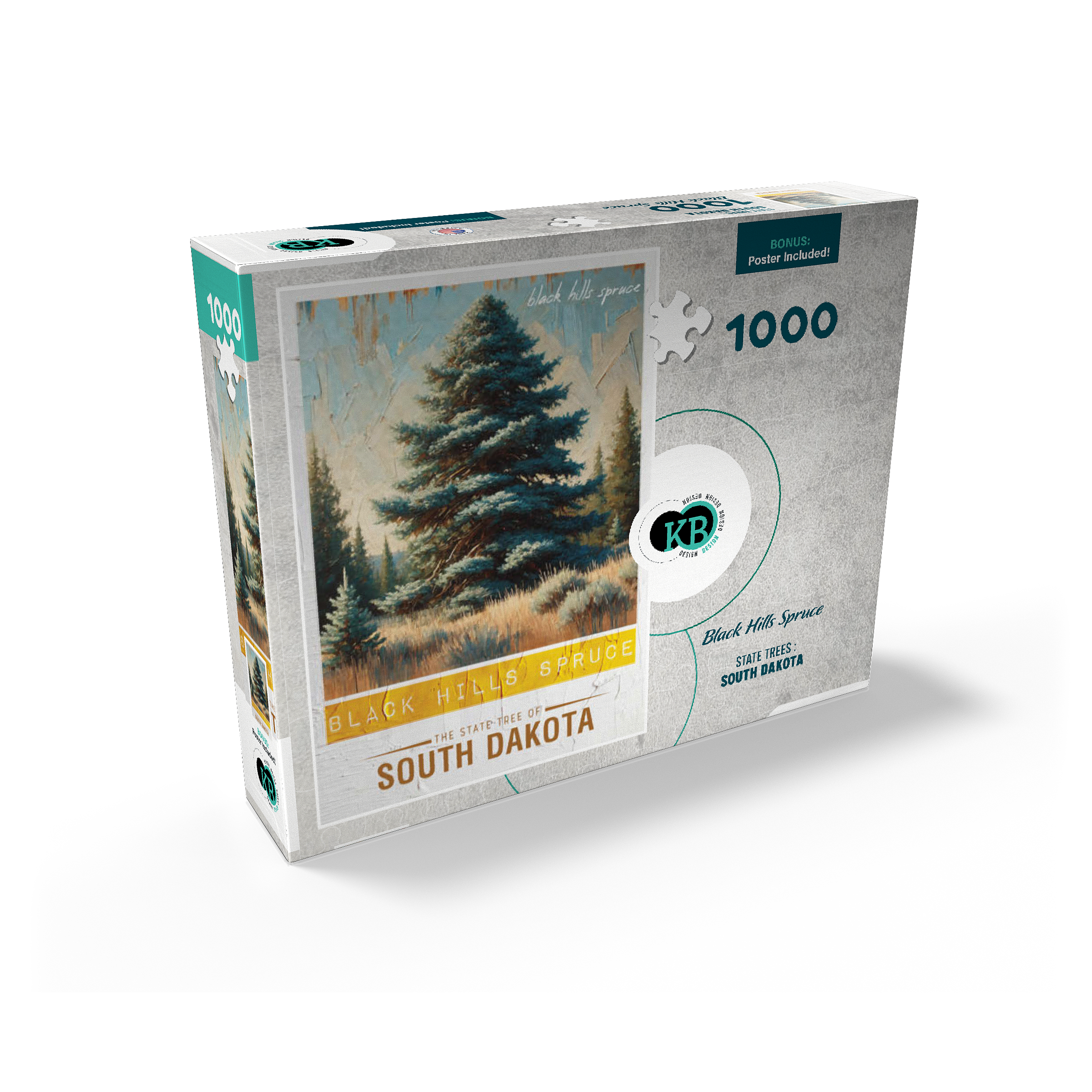 The state tree of South Dakota is the Black Hills spruce (Picea glauca var. densata), designated in 1947. This hardy evergreen is a unique variety of the white spruce and is native to the Black Hills region. It thrives in South Dakota’s rugged climate, providing shelter for wildlife and preventing soil erosion. The tree is valued for its dense, dark green needles and strong wood, making it popular for landscaping and timber. The Black Hills spruce symbolizes resilience, natural beauty, and the rich forestry heritage of South Dakota. The State Trees collection is a unique way to show your state pride! Choose your state, or pick your favorite tree from the collection and watch it come to life. This would make a great gift for a fellow out-of-state puzzle-lover. Go on an 'adventure across the country' and collect them all!