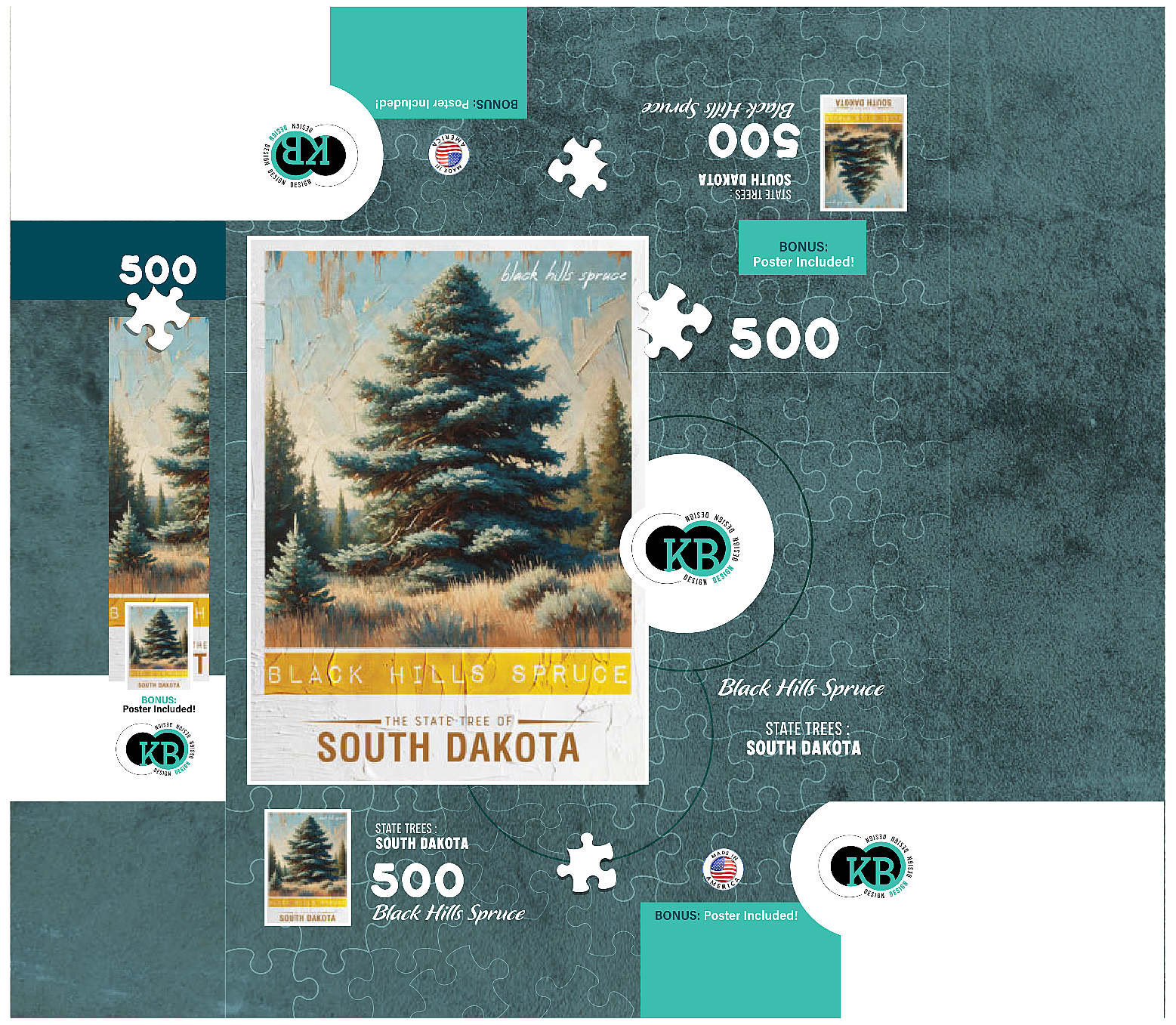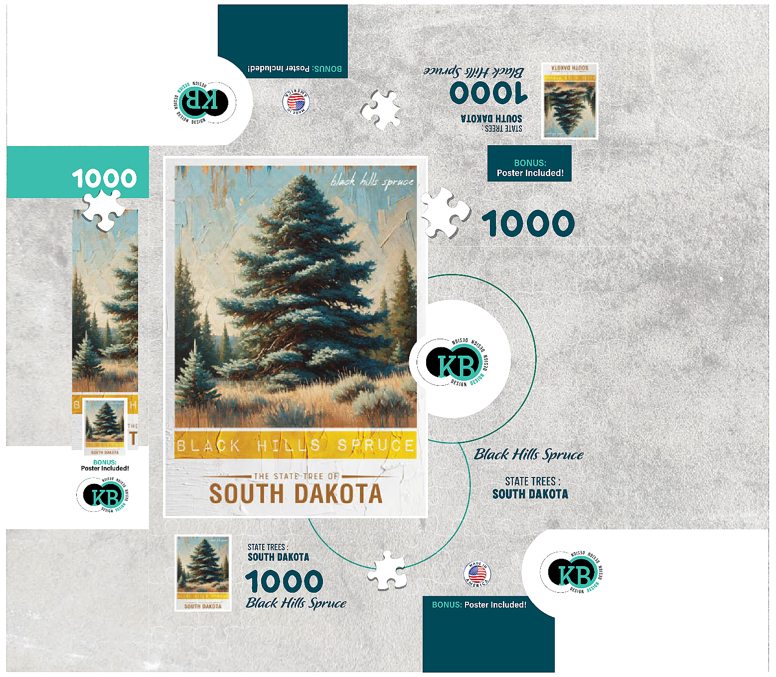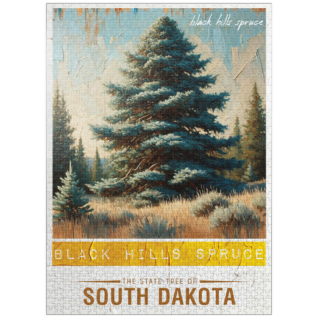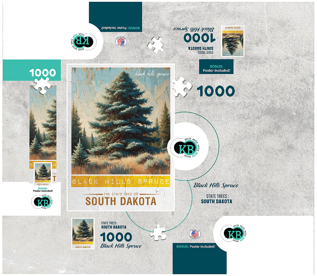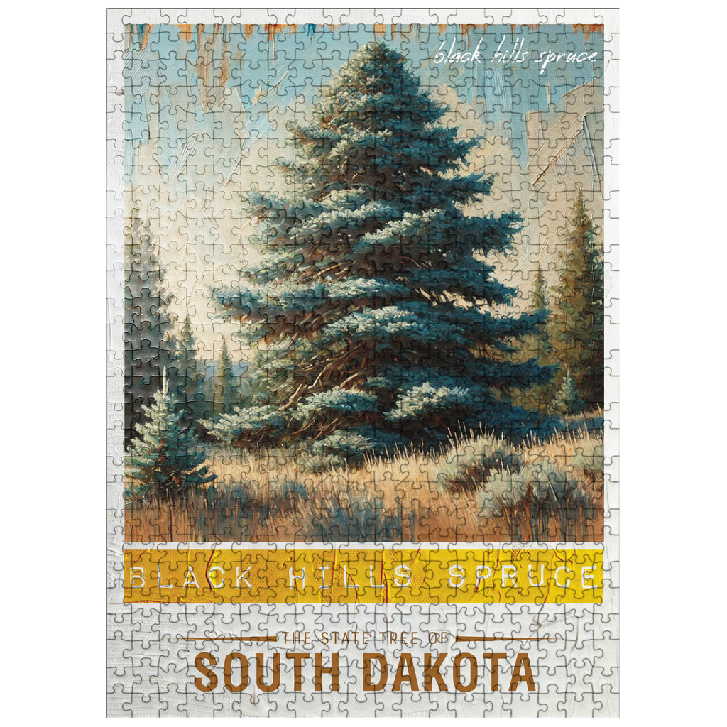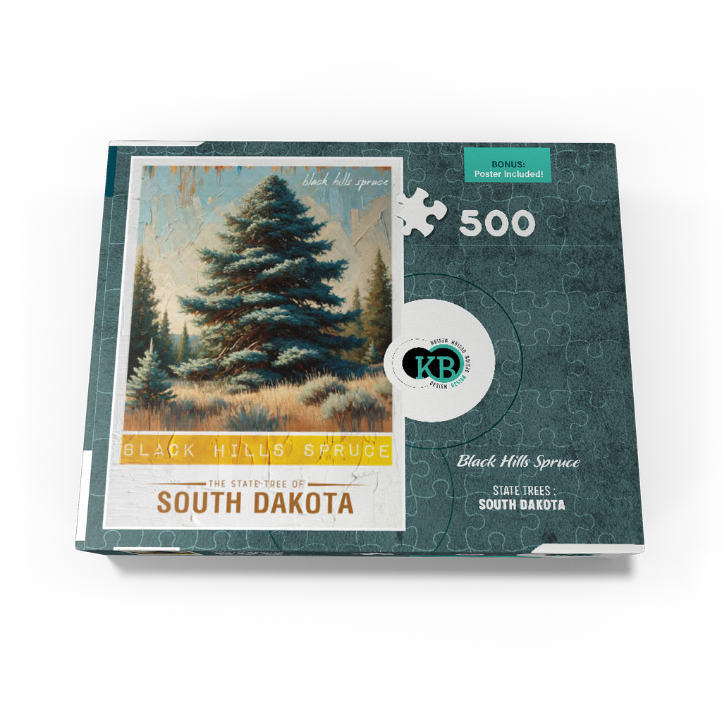 The state tree of South Dakota is the Black Hills spruce (Picea glauca var. densata), designated in 1947. This hardy evergreen is a unique variety of the white spruce and is native to the Black Hills region. It thrives in South Dakota’s rugged climate, providing shelter for wildlife and preventing soil erosion. The tree is valued for its dense, dark green needles and strong wood, making it popular for landscaping and timber. The Black Hills spruce symbolizes resilience, natural beauty, and the rich forestry heritage of South Dakota. The State Trees collection is a unique way to show your state pride! Choose your state, or pick your favorite tree from the collection and watch it come to life. This would make a great gift for a fellow out-of-state puzzle-lover. Go on an 'adventure across the country' and collect them all!
