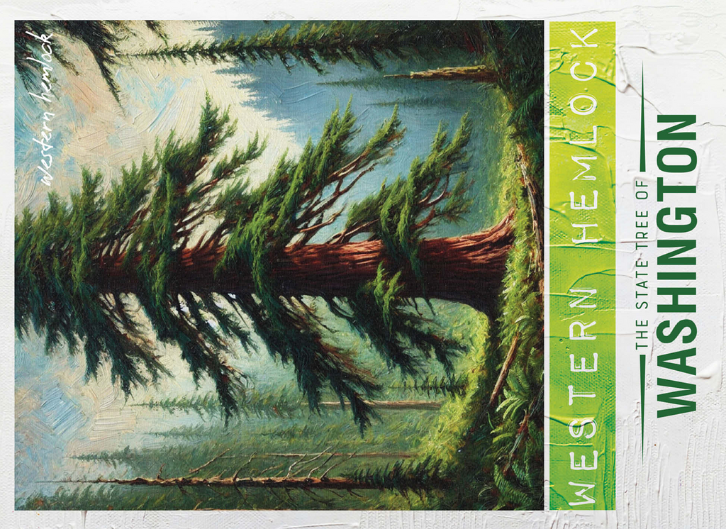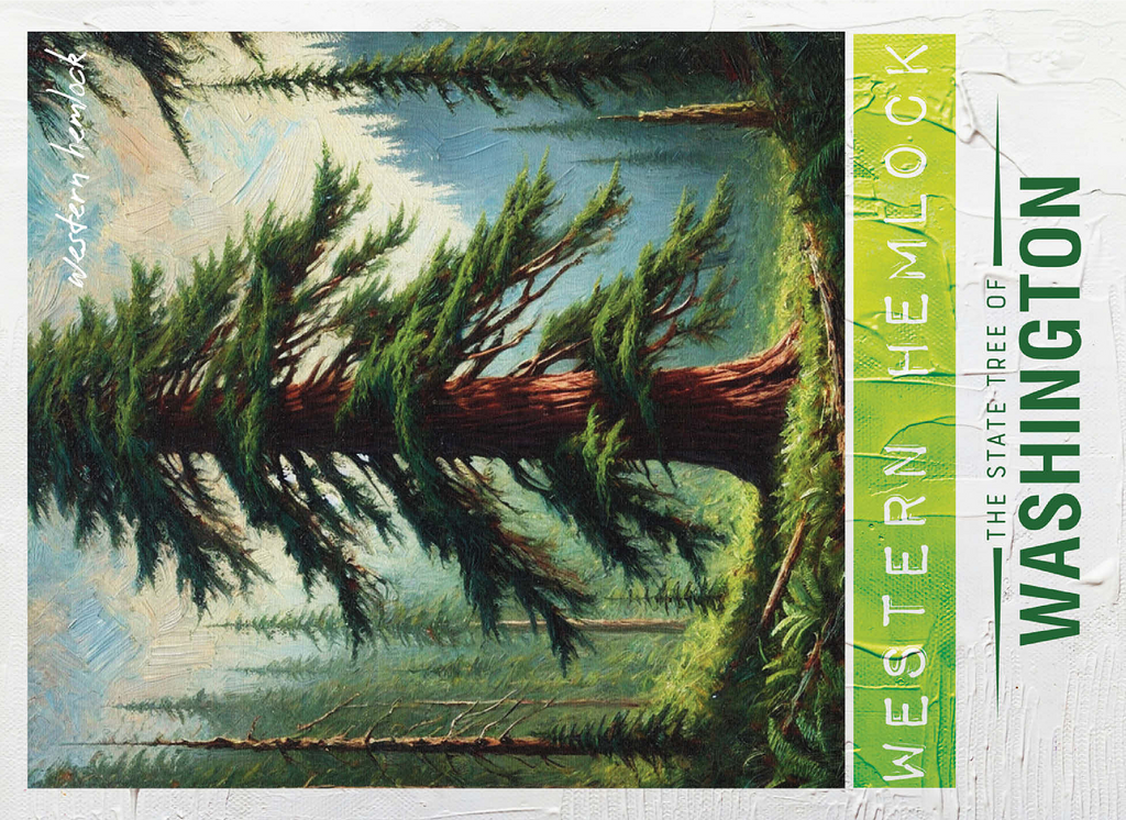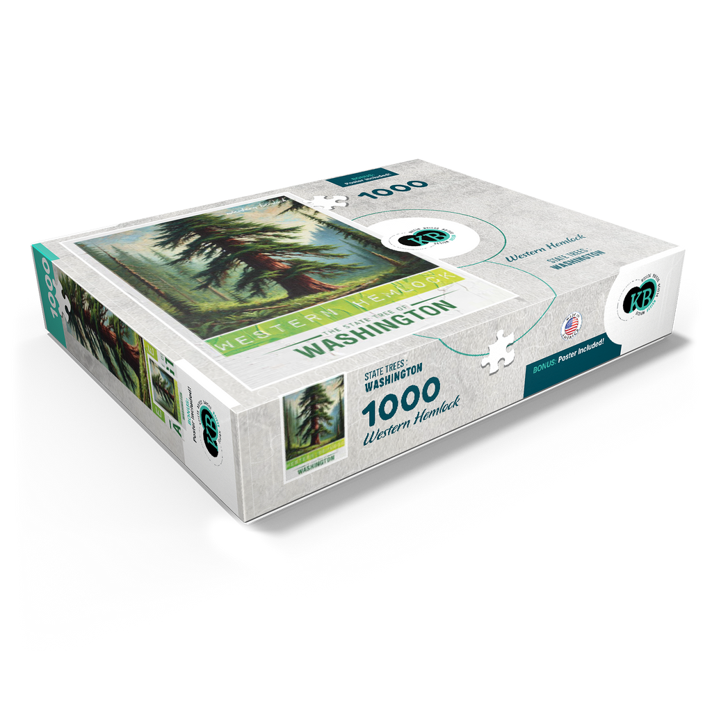 The state tree of Washington is the western hemlock (Tsuga heterophylla), designated in 1947. This tall, graceful evergreen thrives in the Pacific Northwest's temperate rainforests, growing up to 200 feet high. Its soft, lightweight wood is widely used in construction and paper production. Western hemlocks provide vital habitat for wildlife and play an important role in Washington's forestry industry. The tree symbolizes strength, resilience, and the state's rich natural heritage. The State Trees collection is a unique way to show your state pride! Choose your state, or pick your favorite tree from the collection and watch it come to life. This would make a great gift for a fellow out-of-state puzzle-lover. Go on an 'adventure across the country' and collect them all!