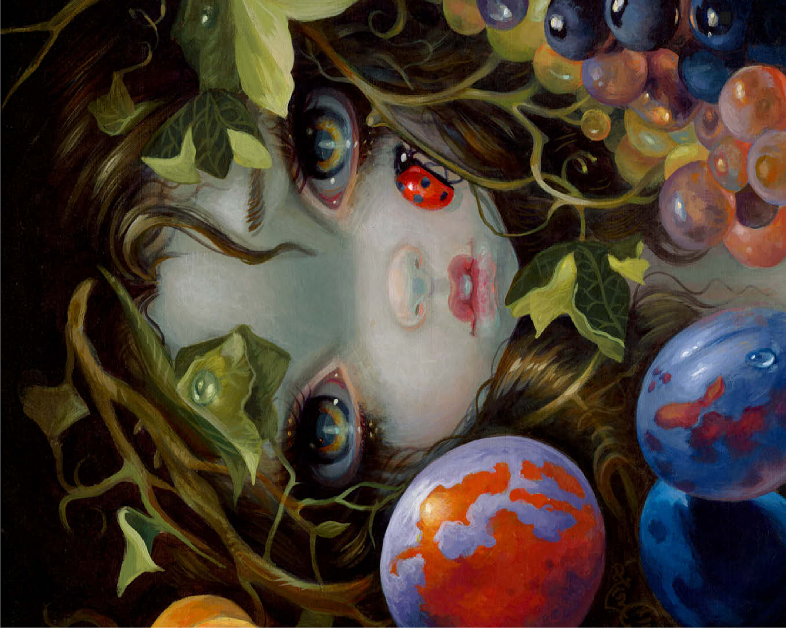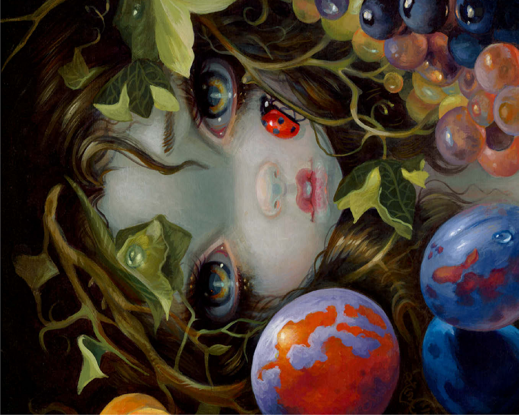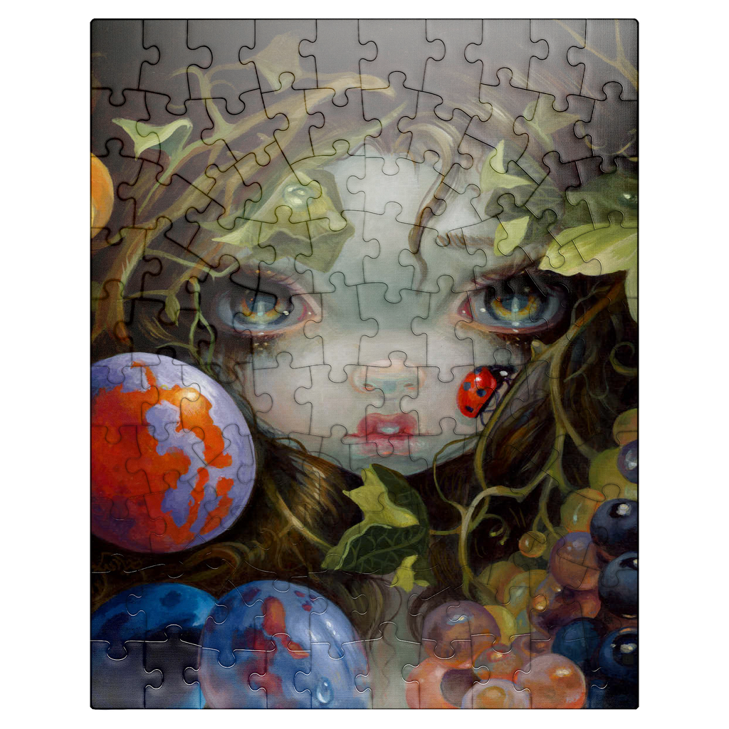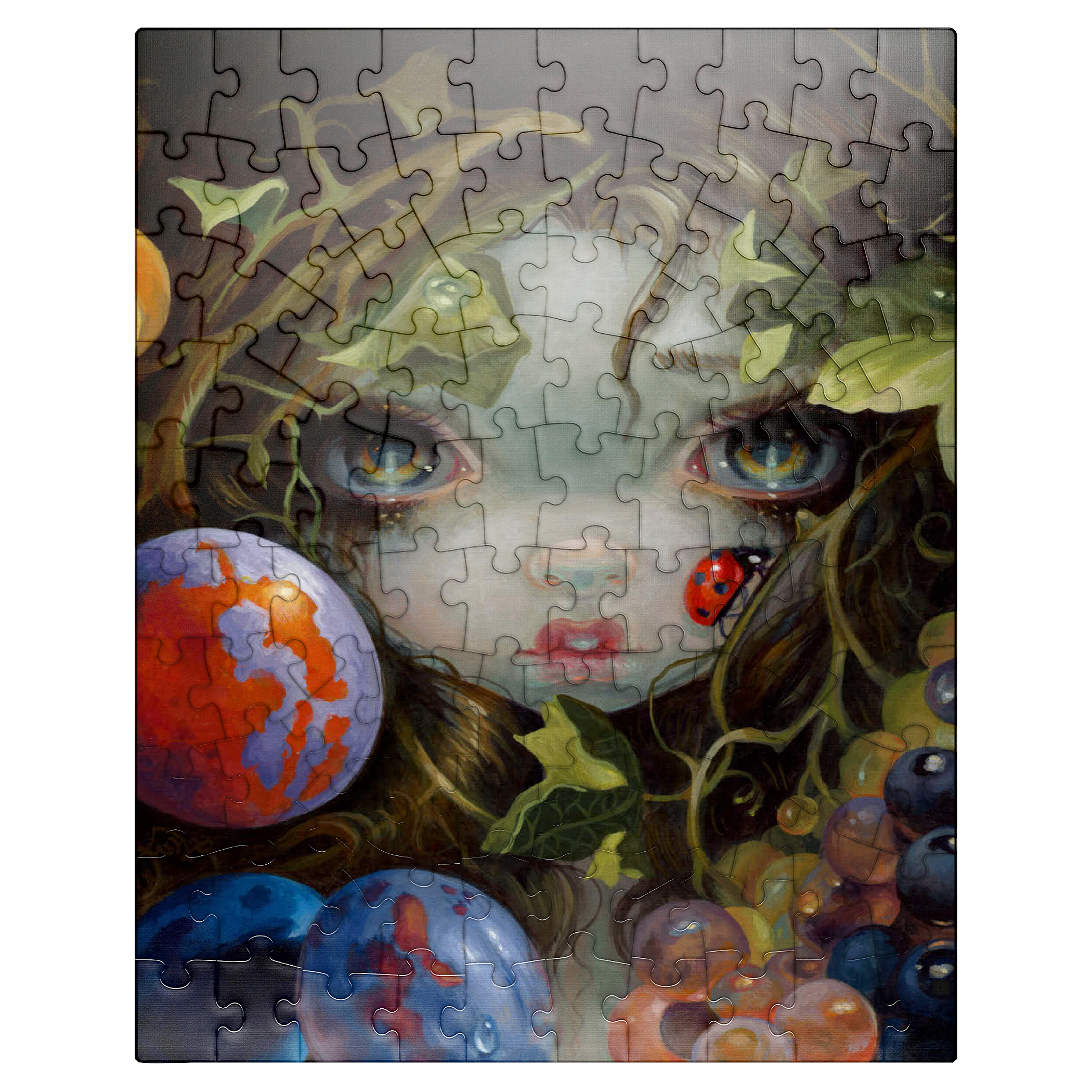 Discover the magic of Stilleven VIII: Lieveheersbeestje, a unique puzzle inspired by Dutch Master still life paintings (1500s-1600s). This artwork -deconstructs- classic elements-beautiful leaves, fruit, and a ladybug (Lieveheersbeestje)-blended with lovely girls, fairies, and nymphs. Bring this captivating blend of historical art and fantasy, which means -Still Life- (Stilleven) in Dutch, to life piece by piece.