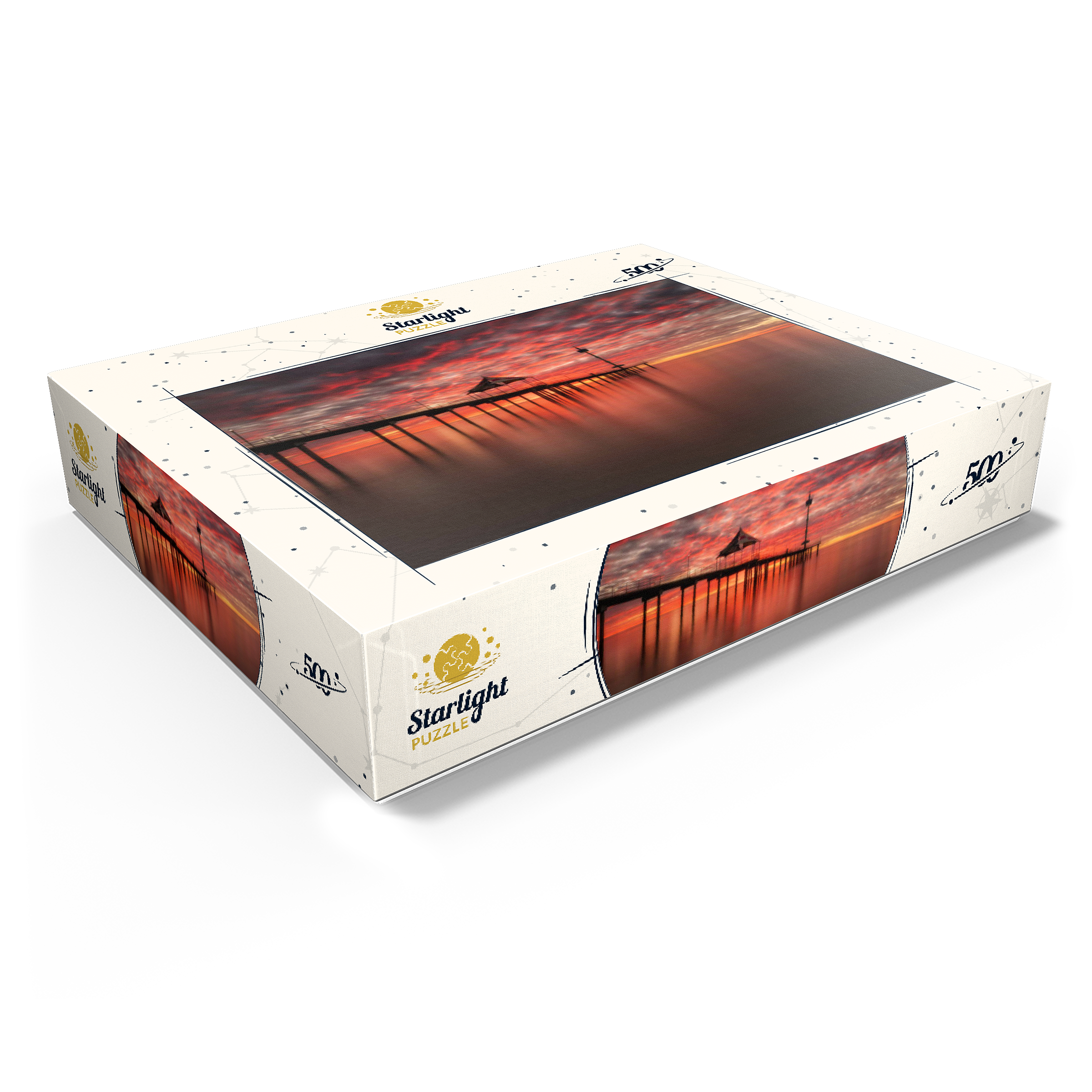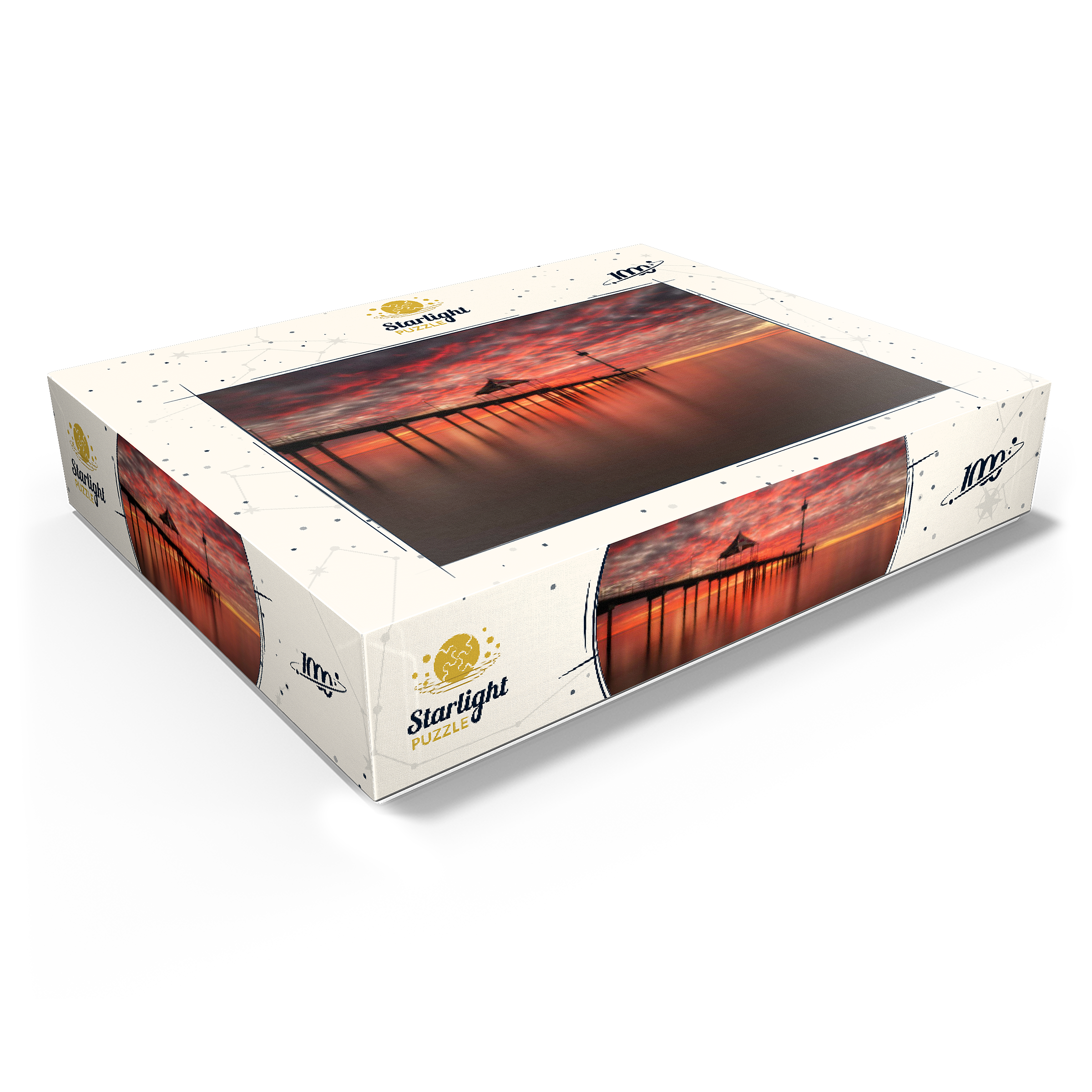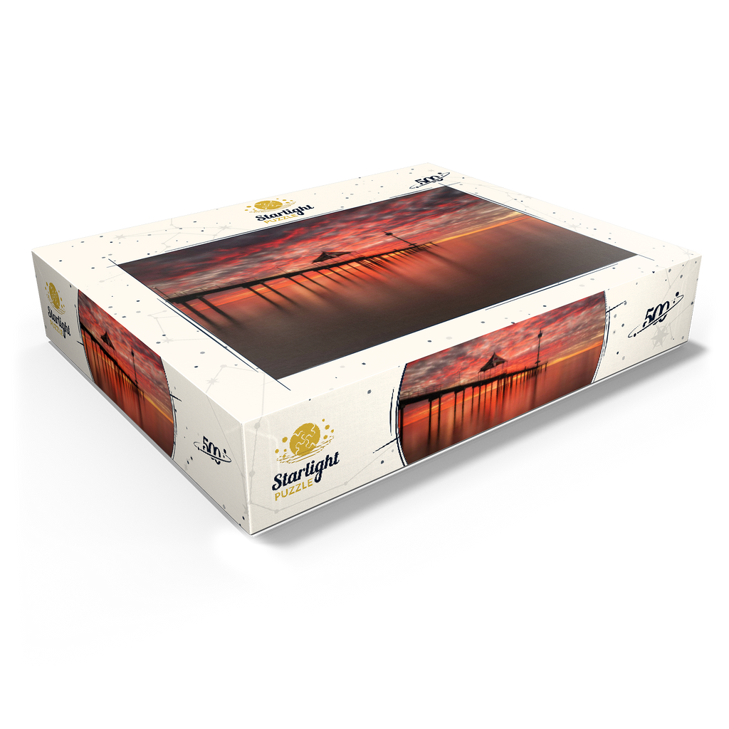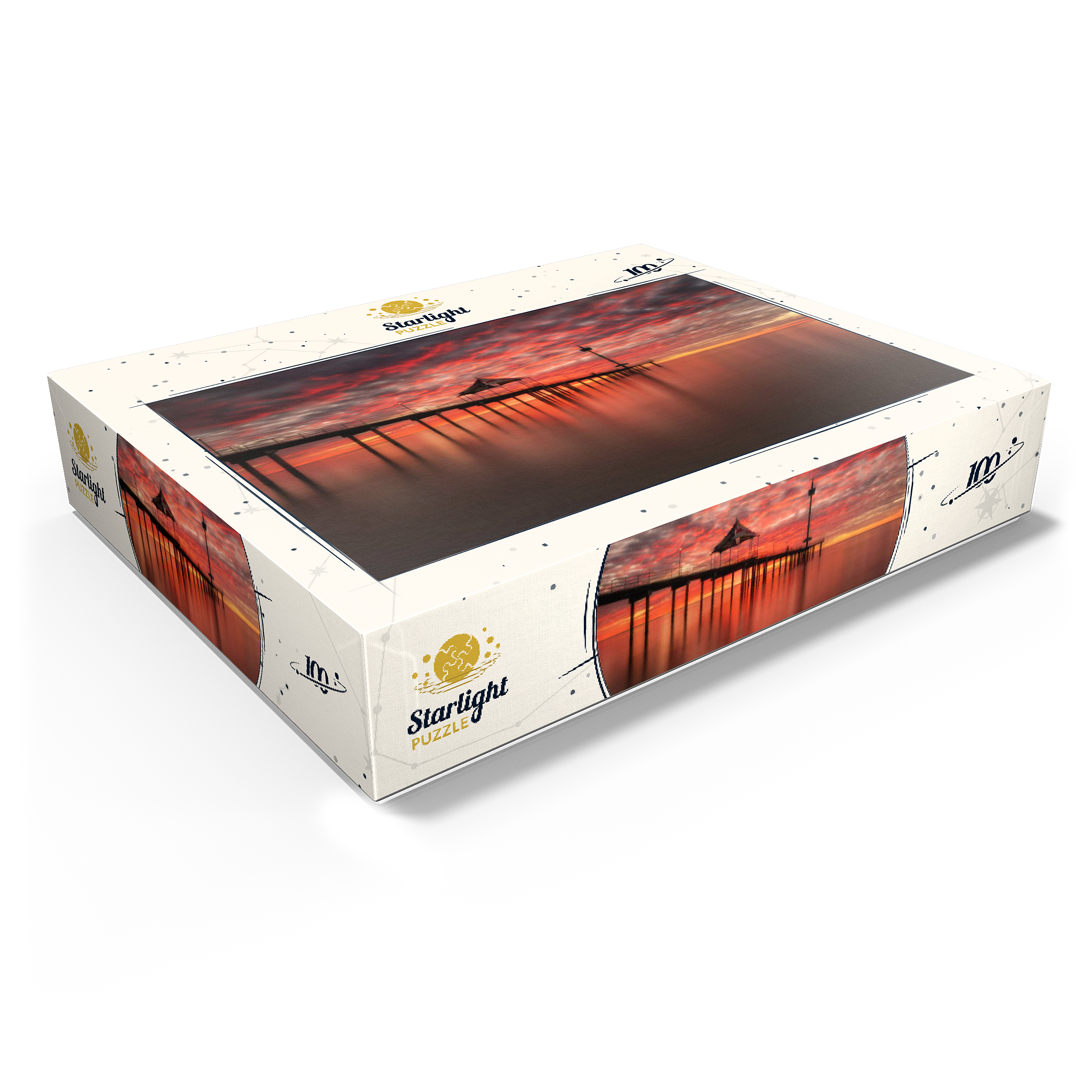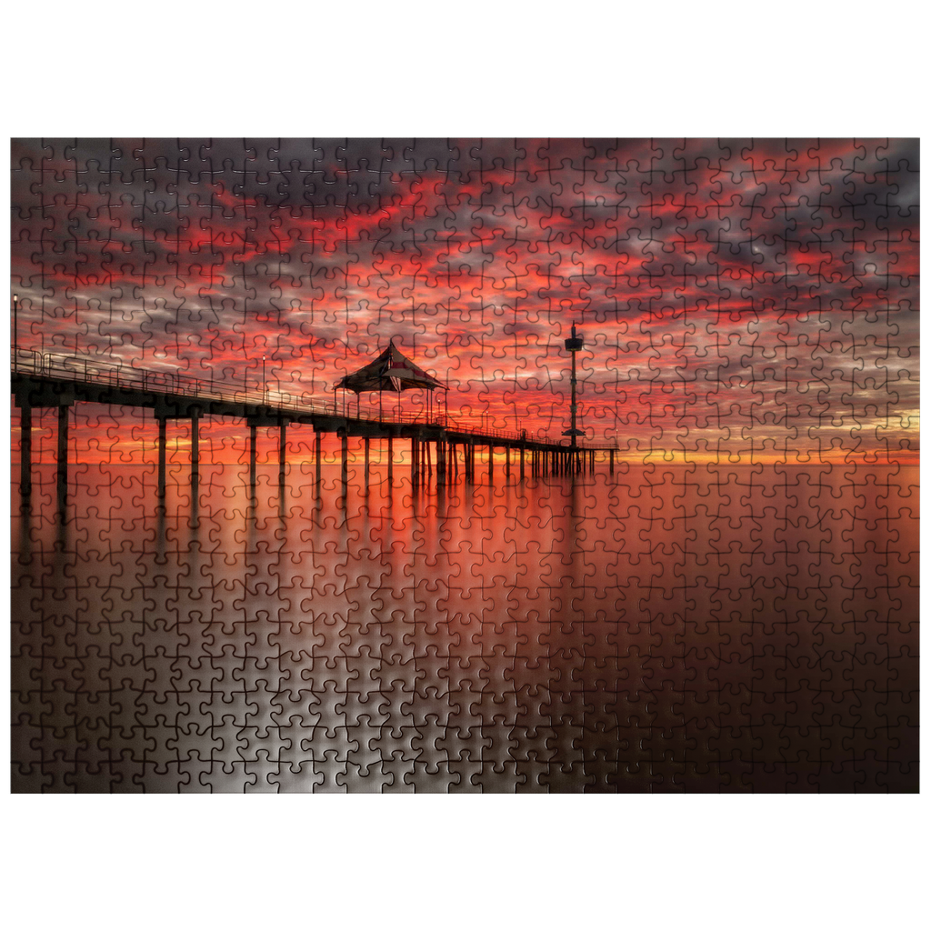Brighton Jetty in South Australia offers a stunning view of the sunset, with vibrant hues of red, orange, and purple reflecting across the calm waters. The long pier, extending into the Gulf St Vincent, provides a perfect silhouette against the dramatic sky. Popular among locals and tourists, the jetty is a favored spot for leisurely walks, fishing, and photography. The unique pavilion and beacon structure add character to the scene, creating an idyllic coastal atmosphere that captures the essence of a serene Australian evening.