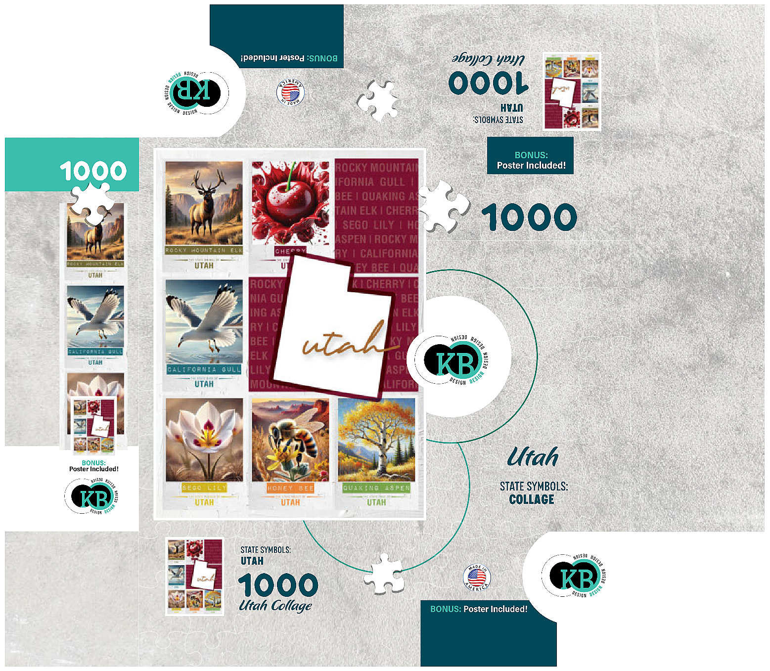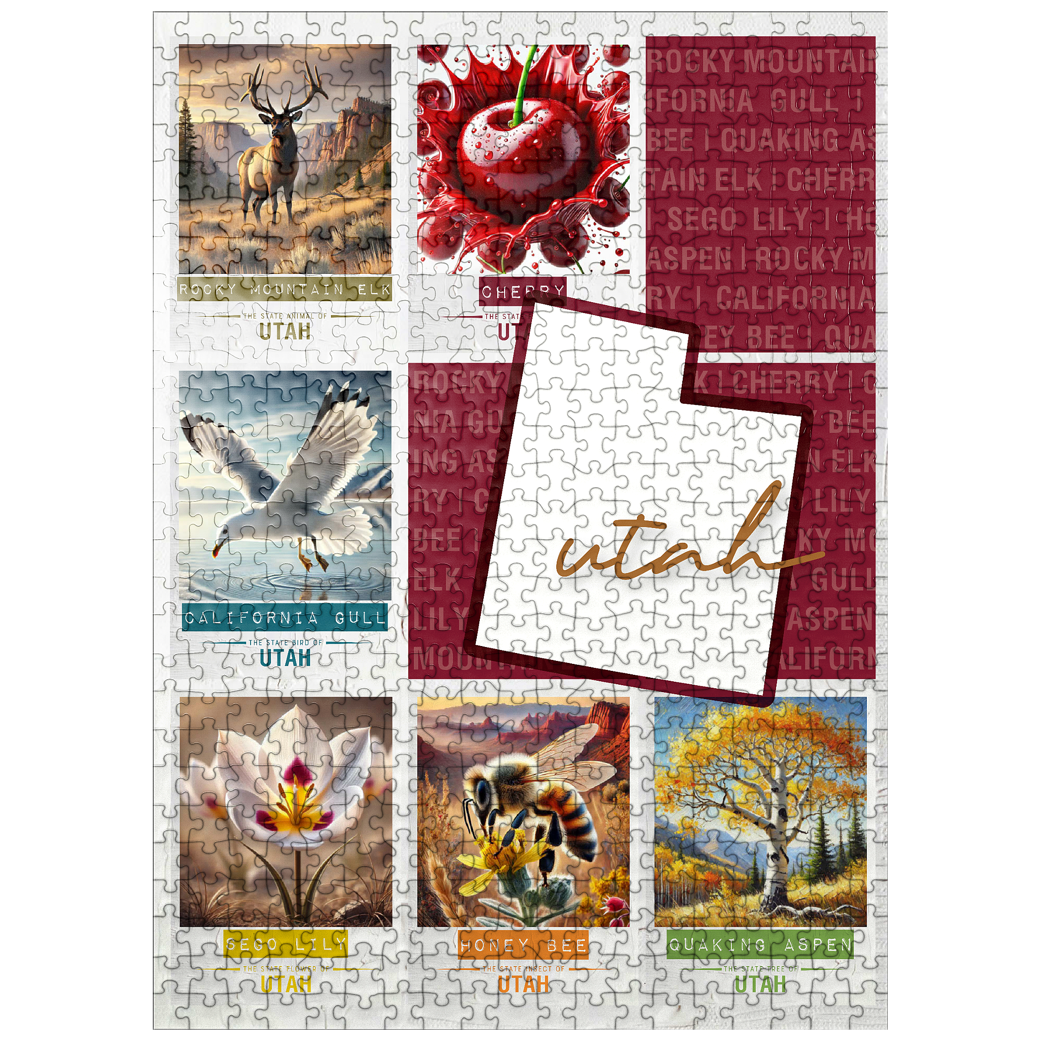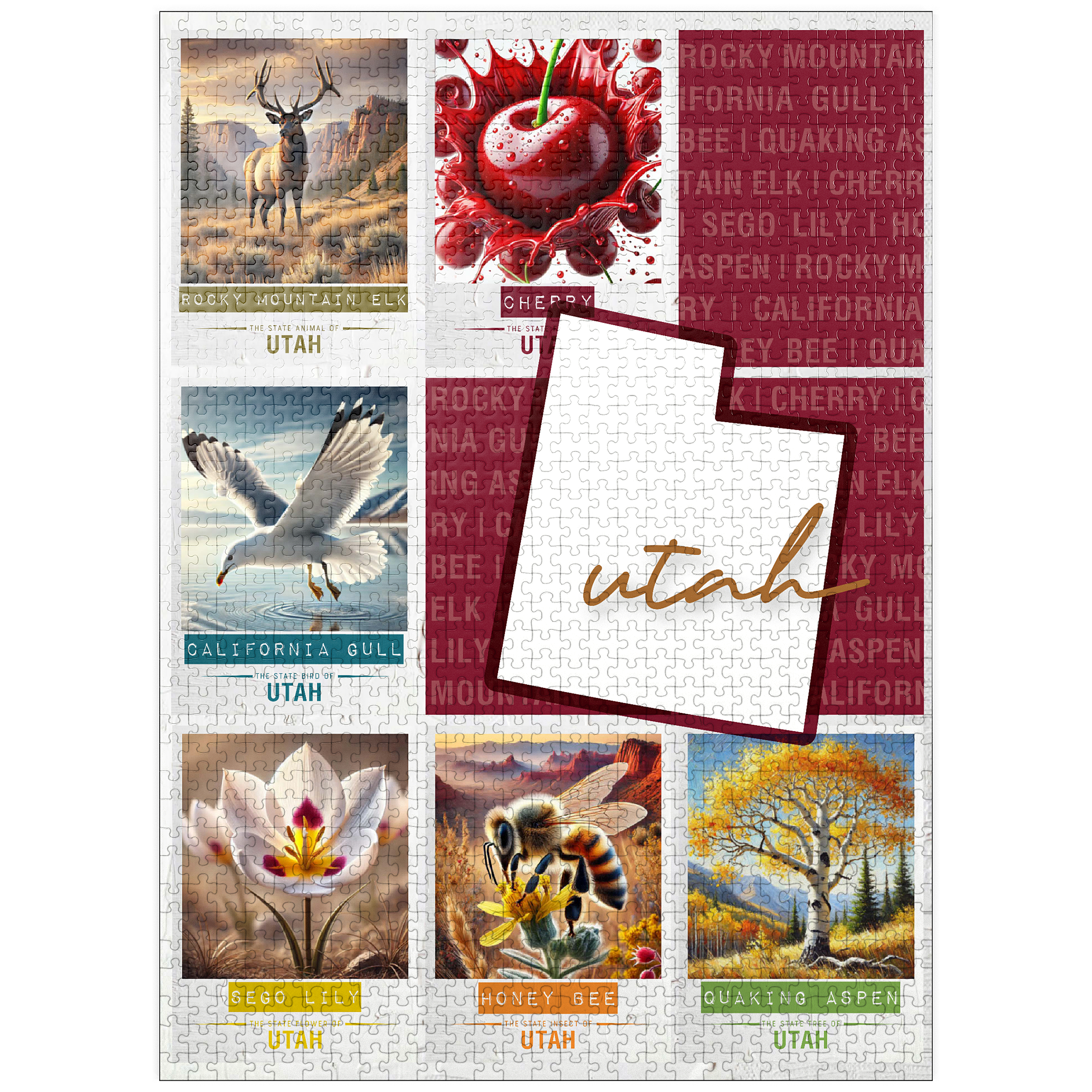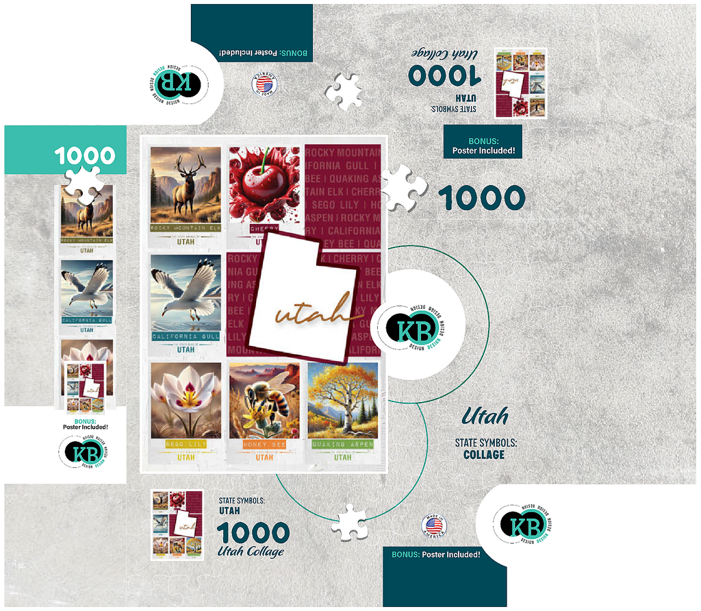 The State Symbols Posters are a fun, colorful way to show your state pride. each poster features a collage of the state: animal, fruit, bird, flower, insect, and tree from the region. this would make a great gift for a fellow out-of-state puzzle-lover-or go on an 'adventure across the country' and collect them all for yourself!
