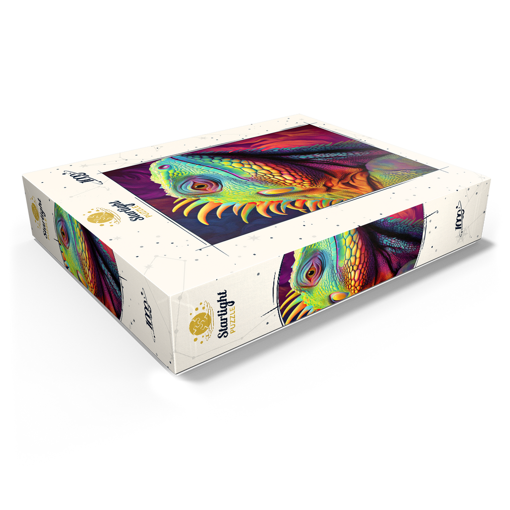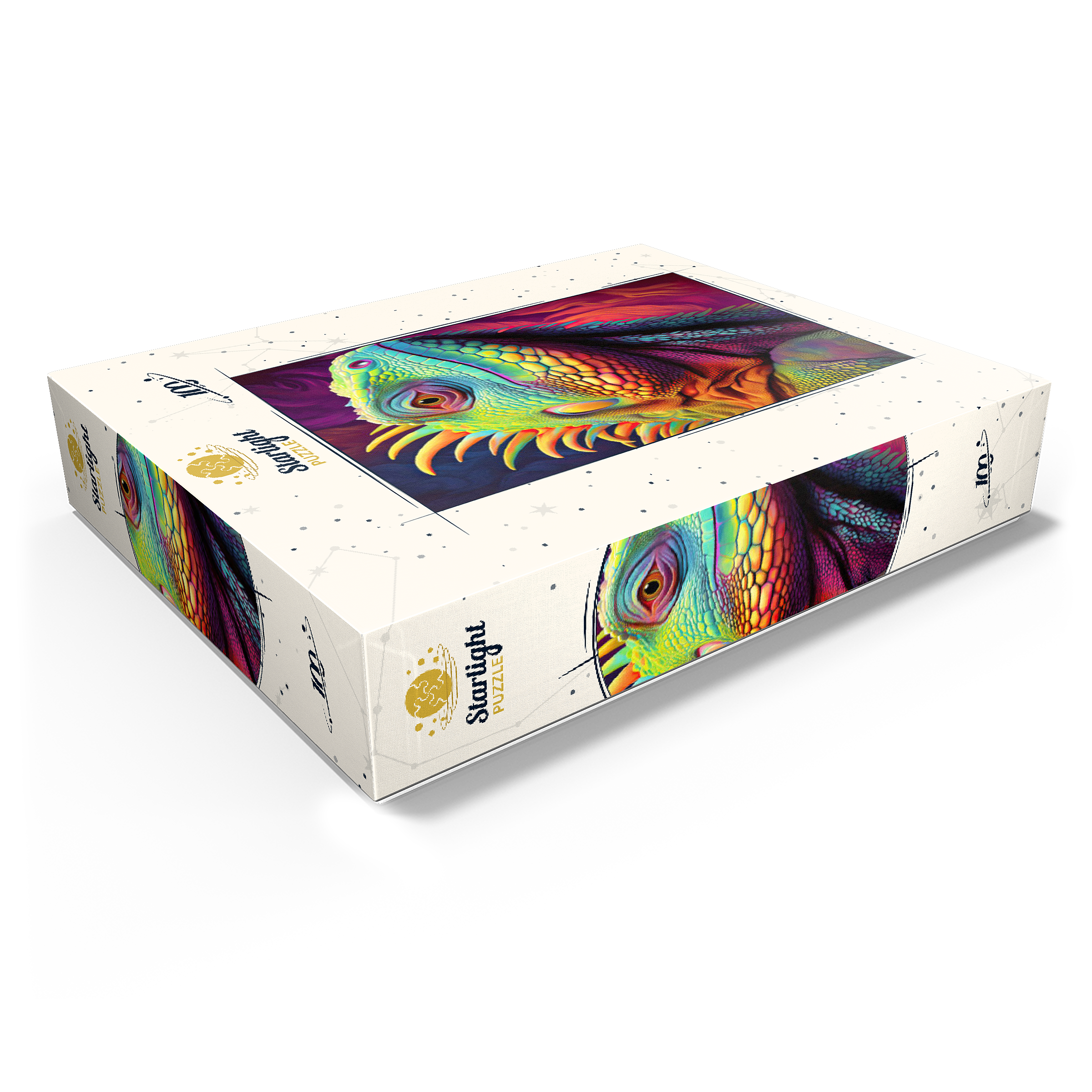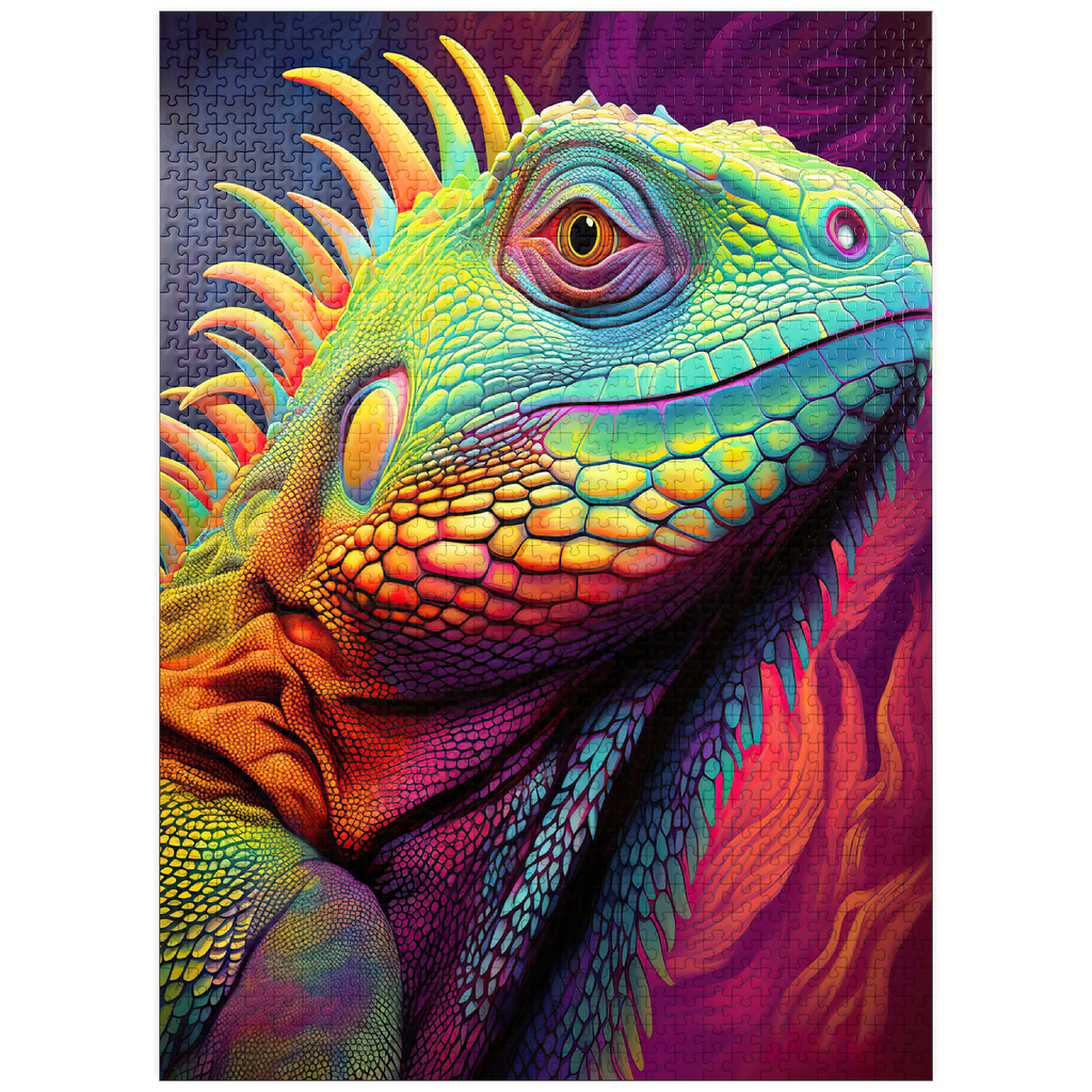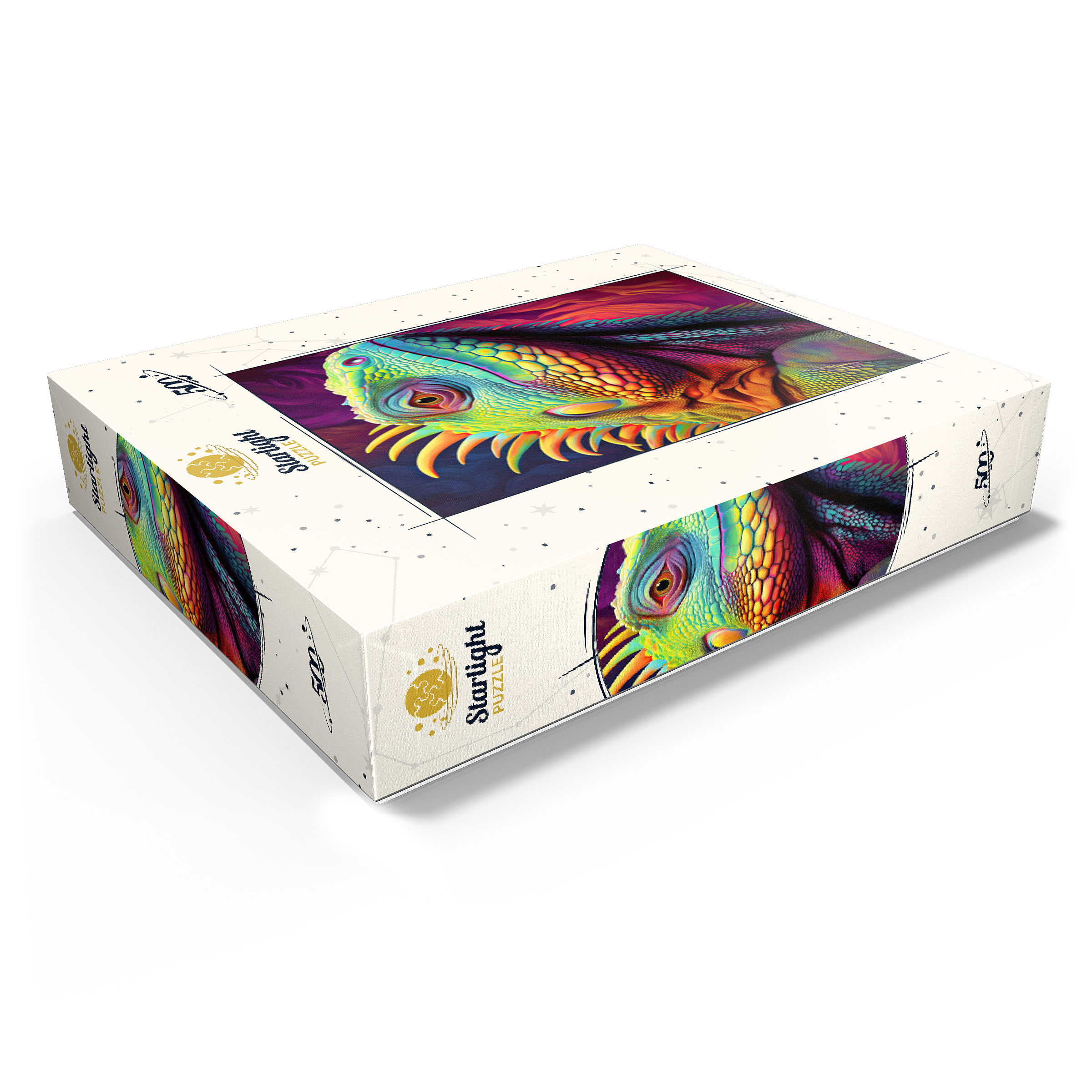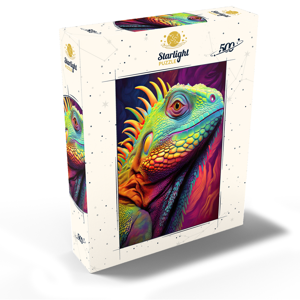 This mesmerizing artwork showcases a brilliantly colored iguana in a surreal, psychedelic style. its intricate scales shimmer with a fusion of neon greens, fiery oranges, deep purples, and electric blues, creating an eye-catching and otherworldly effect. the detailed textures and vibrant hues bring out the reptile's natural beauty while adding a fantastical, dreamlike quality. set against a dramatic, swirling background, this piece radiates energy, making it a perfect choice for reptile lovers, fantasy art enthusiasts, and those drawn to bold, colorful digital illustrations.