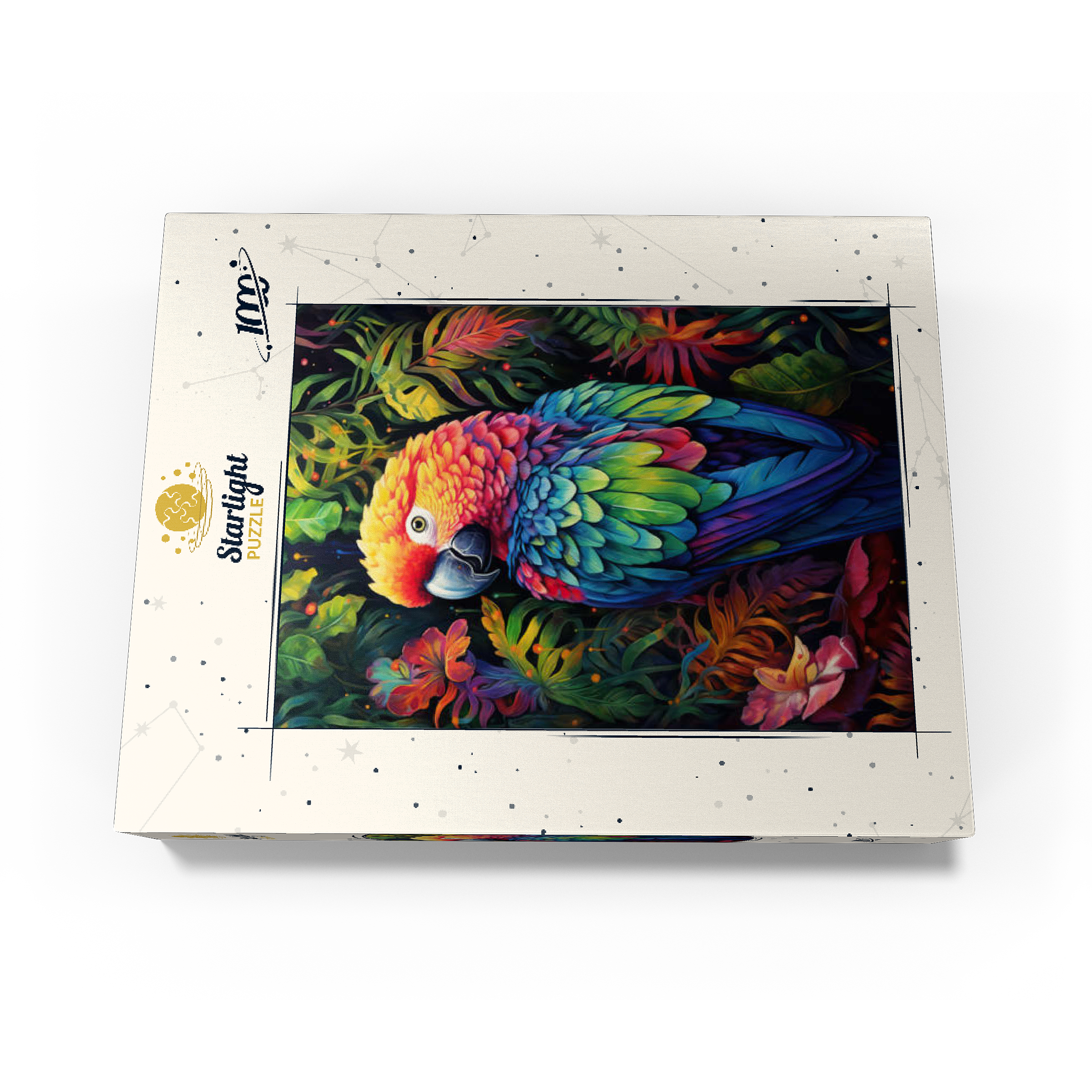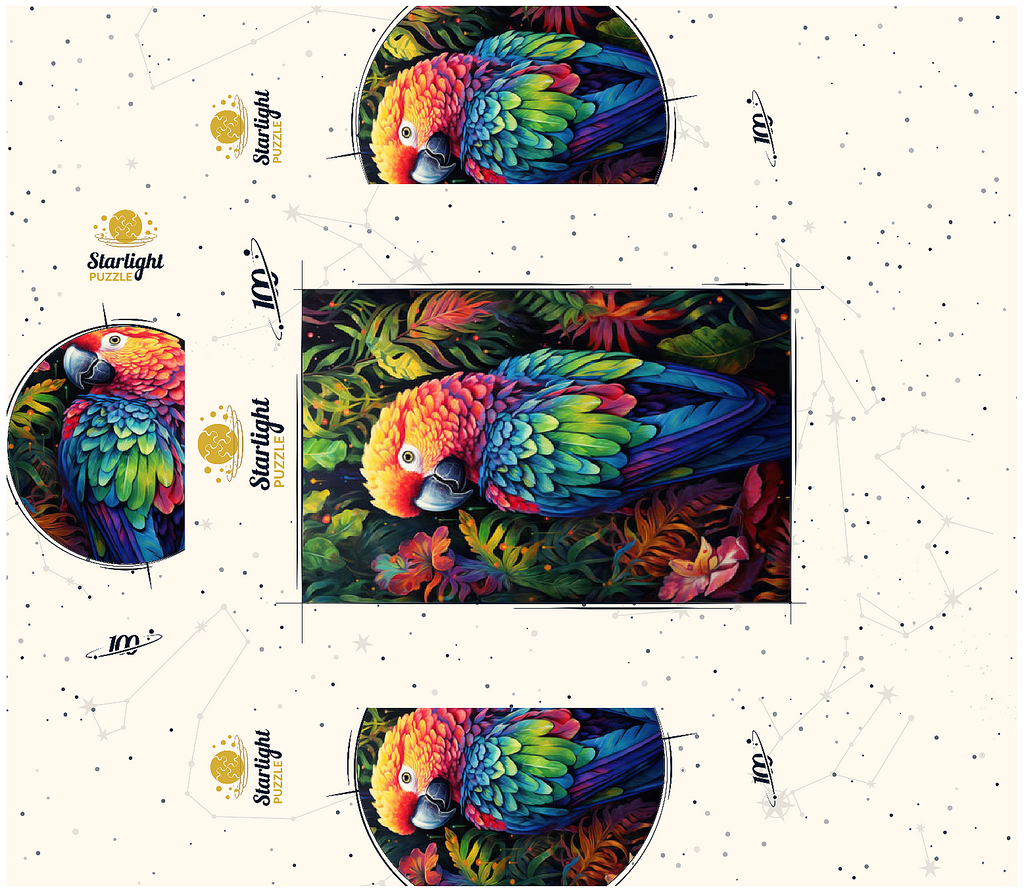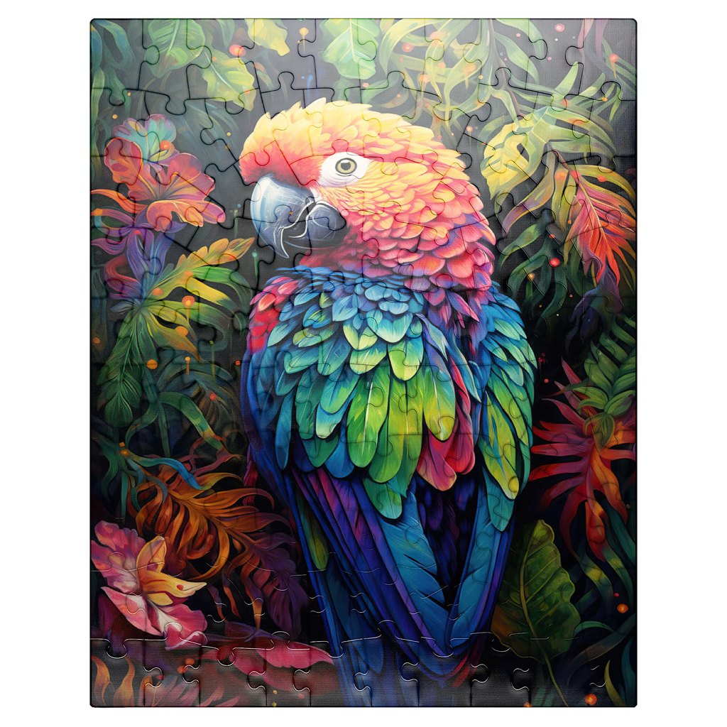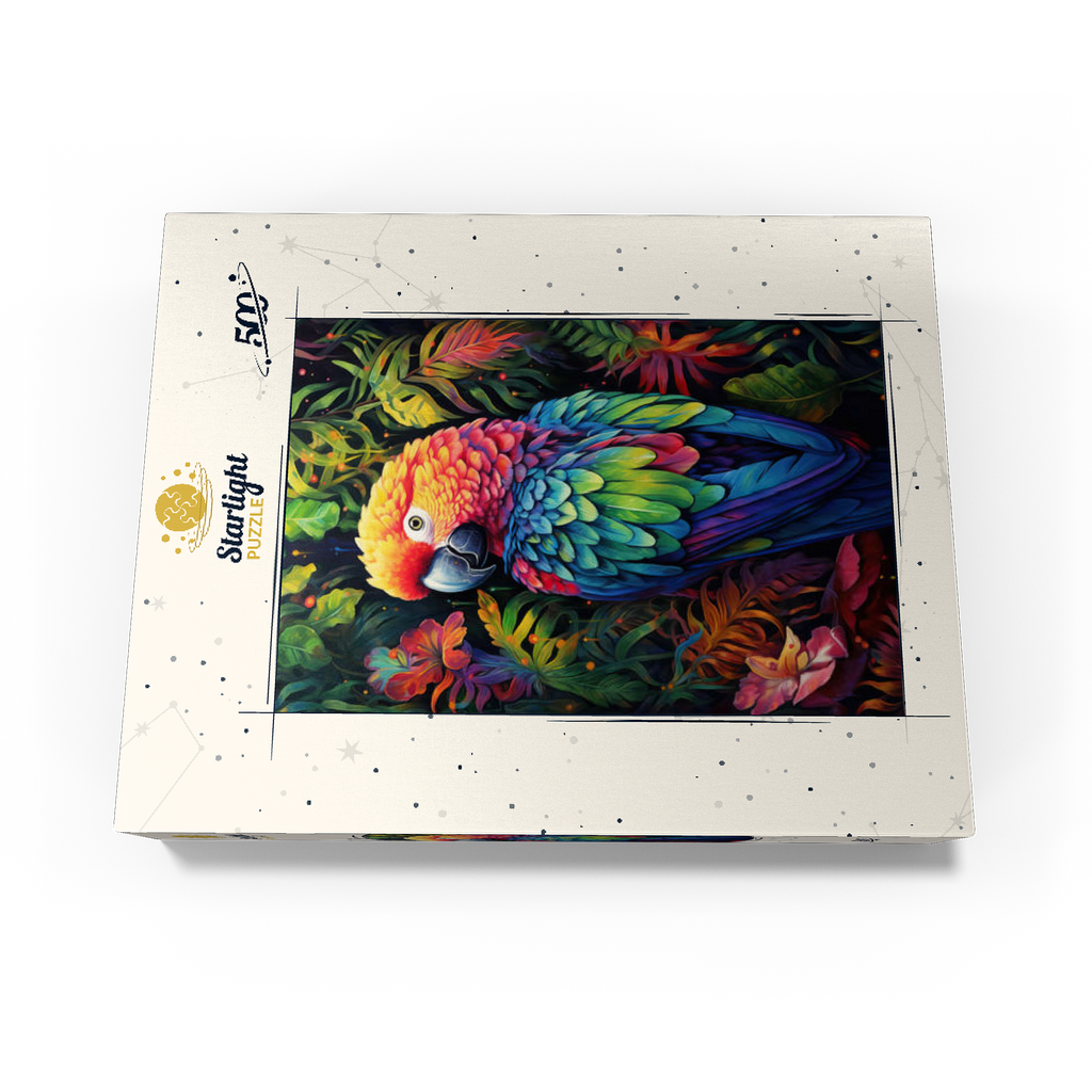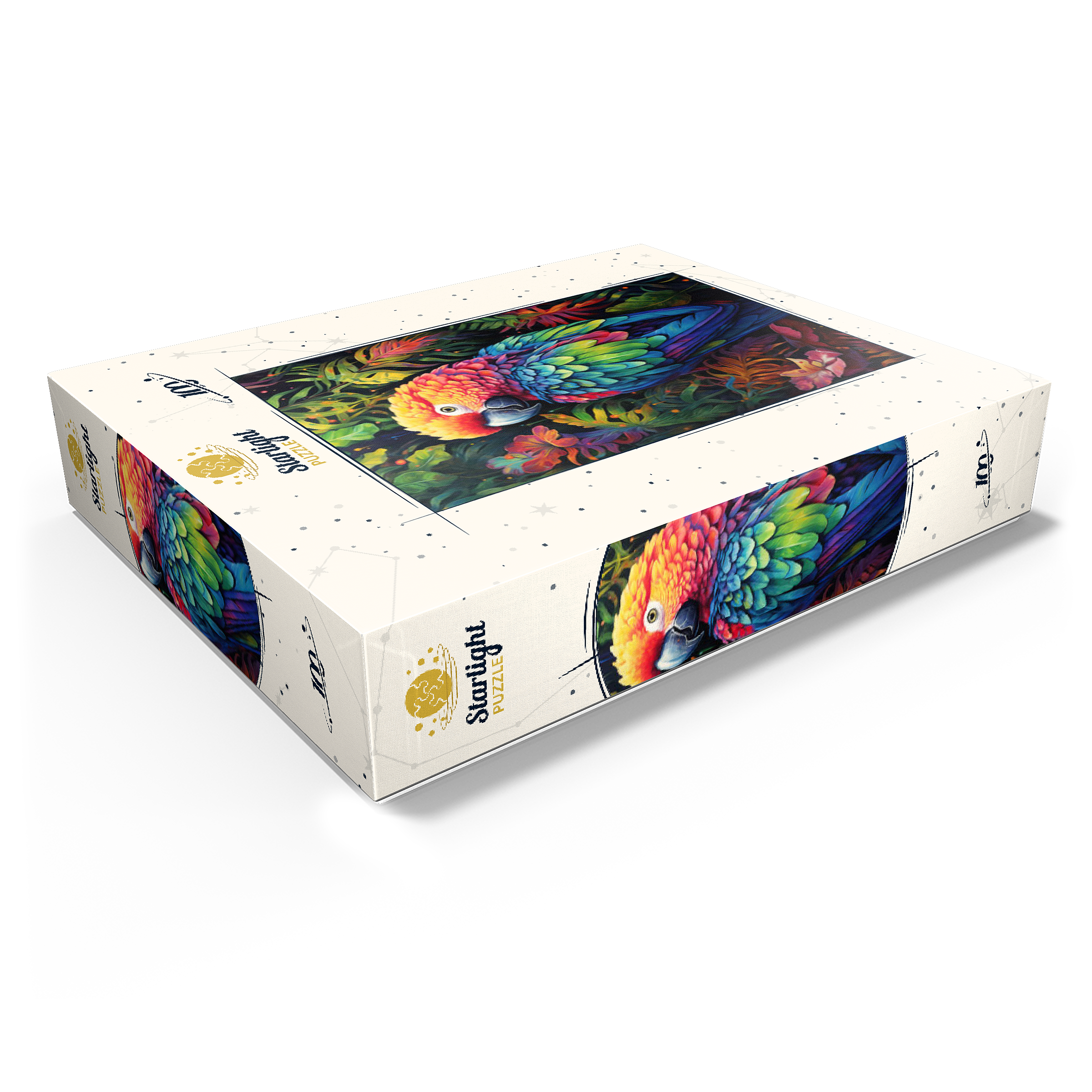 This stunning artwork captures the beauty of a scarlet macaw with an explosion of vibrant colors, set against a lush tropical jungle. The intricate feather details showcase a mesmerizing blend of red, blue, green, and yellow, creating a striking visual masterpiece. The exotic foliage and deep rainforest hues enhance the parrot's regal presence, making this a perfect piece for nature and bird lovers. Ideal for those who appreciate wildlife art, tropical aesthetics, and colorful, detailed illustrations.