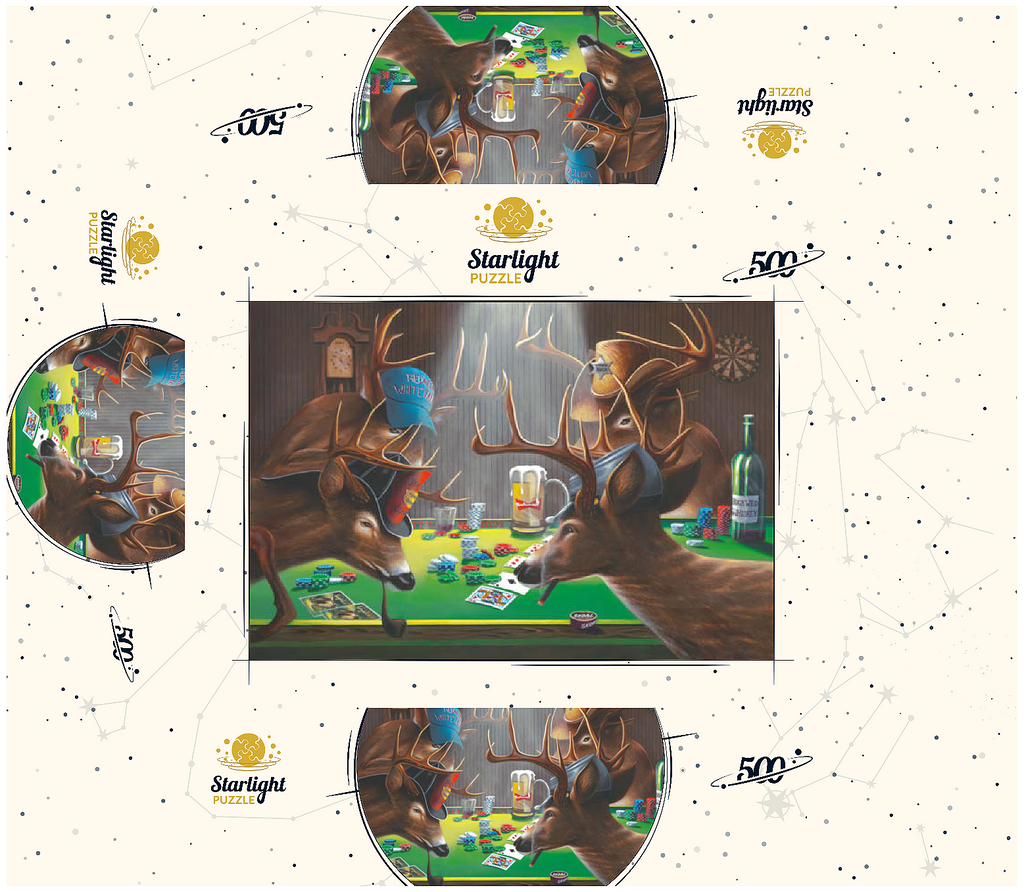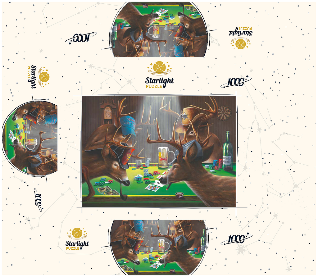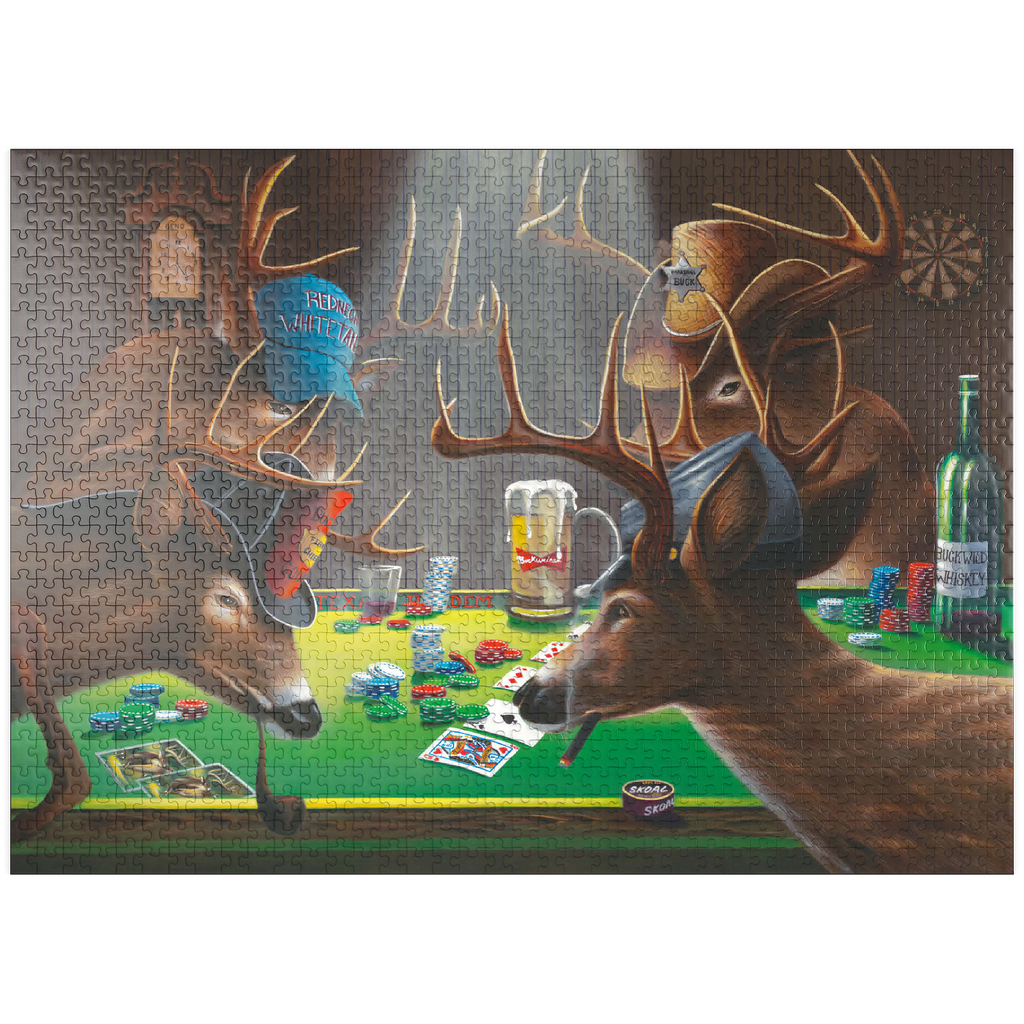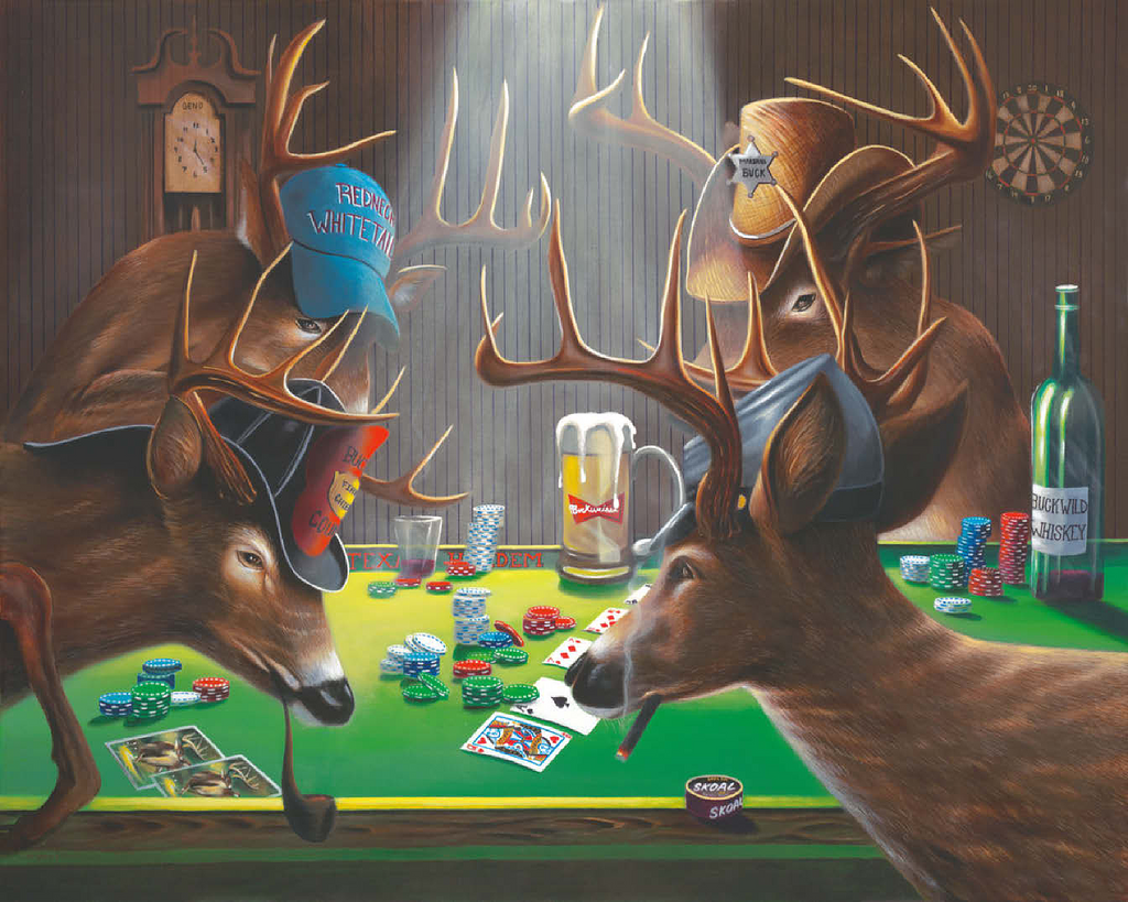 show all tags anthropomorphic-animals/ artist-geno-peoples/ artnr-genpeo147685/ barroom-scene/ deer/ funny-deer/ grateful-licensing/ humorous-wildlife/ orientation-landscape/ pieces-1000us/ pieces-100us/ pieces-500us/ poker/ poker-playing-animals/ rustic-interior/ skill-3/ texas-holdem/ whitetail-bucks/