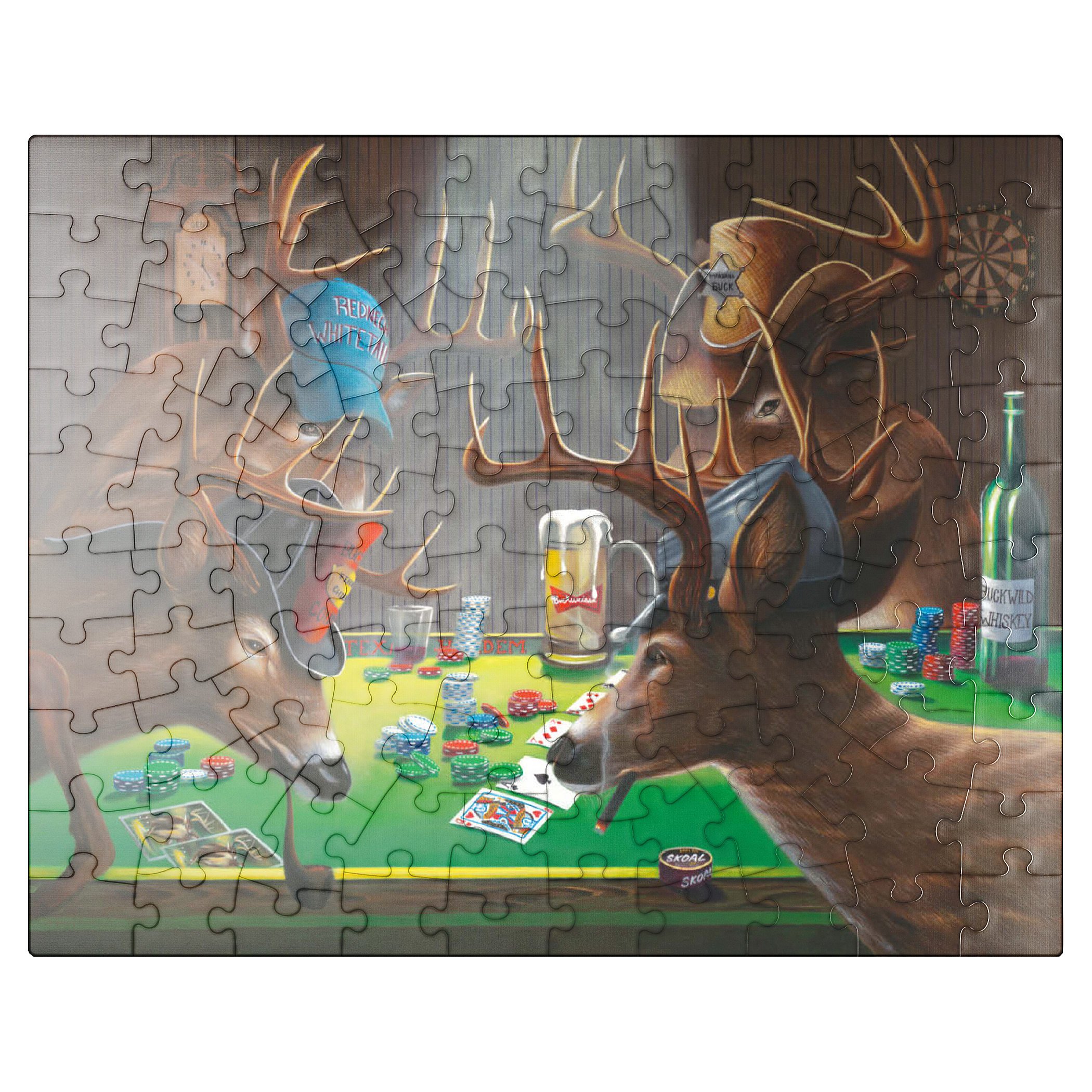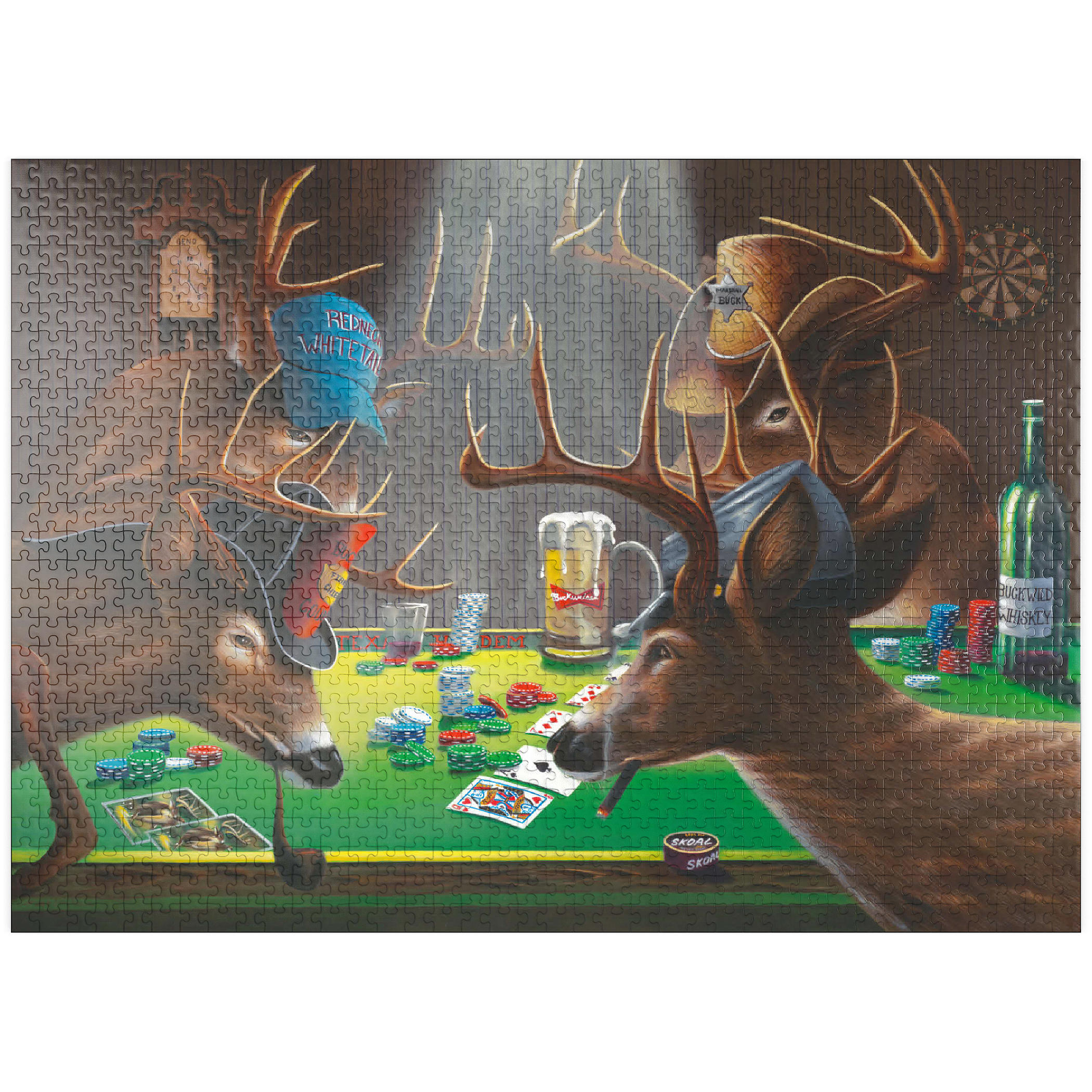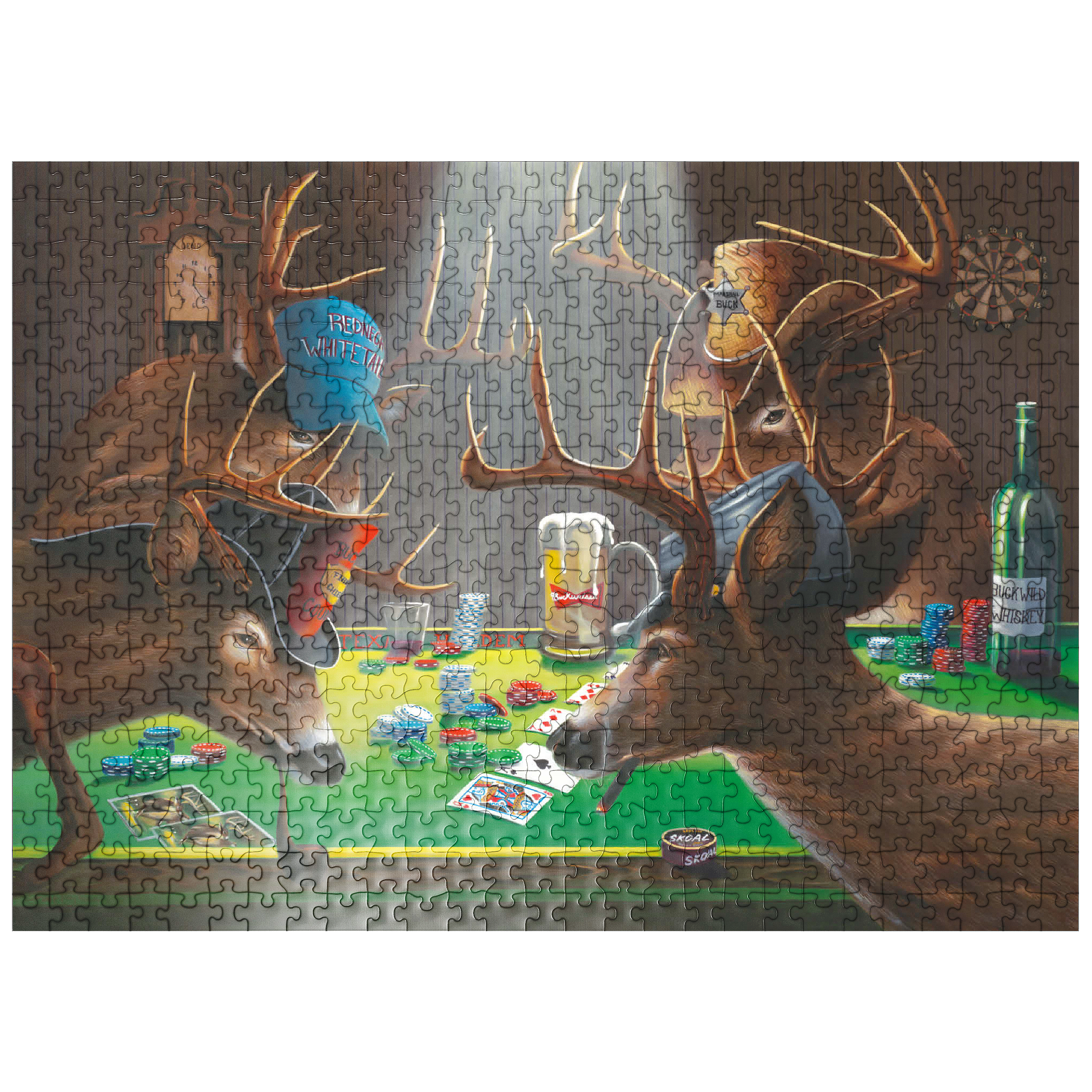 show all tags anthropomorphic-animals/ artist-geno-peoples/ artnr-genpeo147685/ barroom-scene/ deer/ funny-deer/ grateful-licensing/ humorous-wildlife/ orientation-landscape/ pieces-1000us/ pieces-100us/ pieces-500us/ poker/ poker-playing-animals/ rustic-interior/ skill-3/ texas-holdem/ whitetail-bucks/